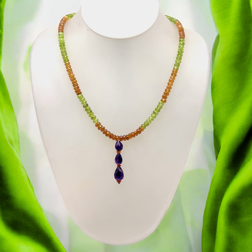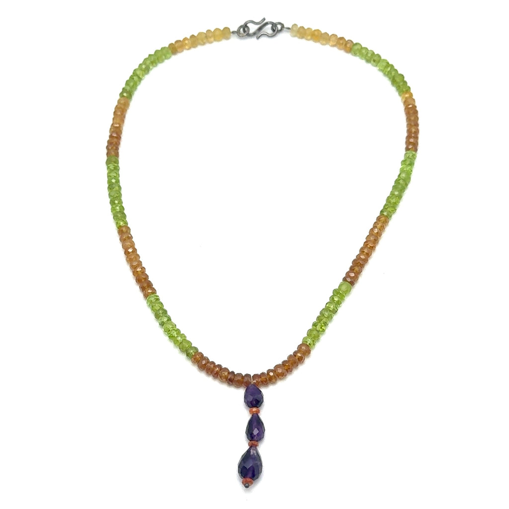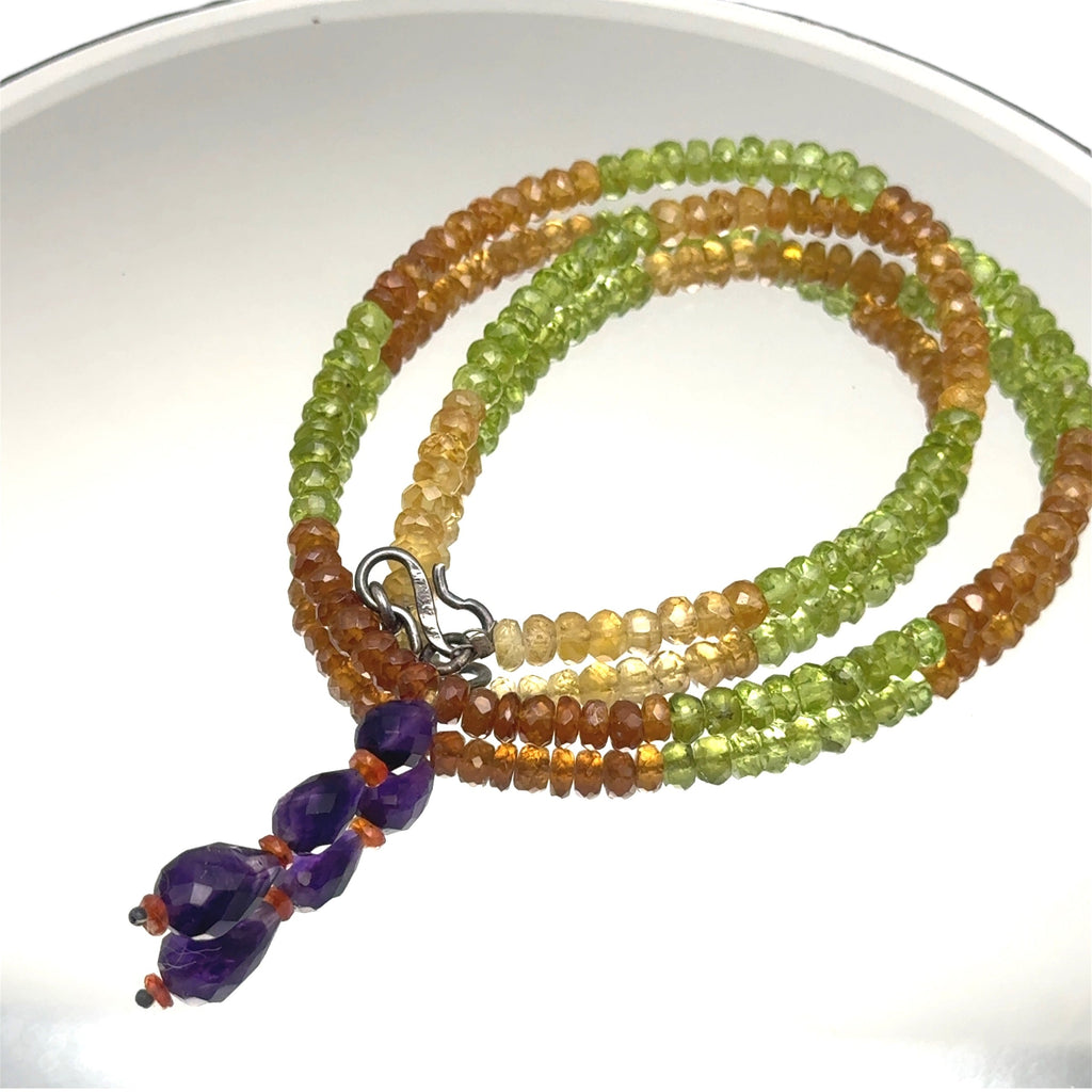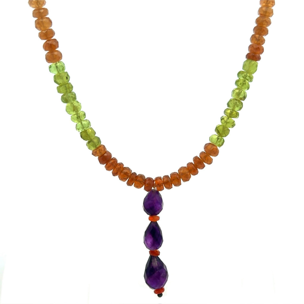 Peridot Natural, Spessartite, Amethyst, and Citrine Necklace
