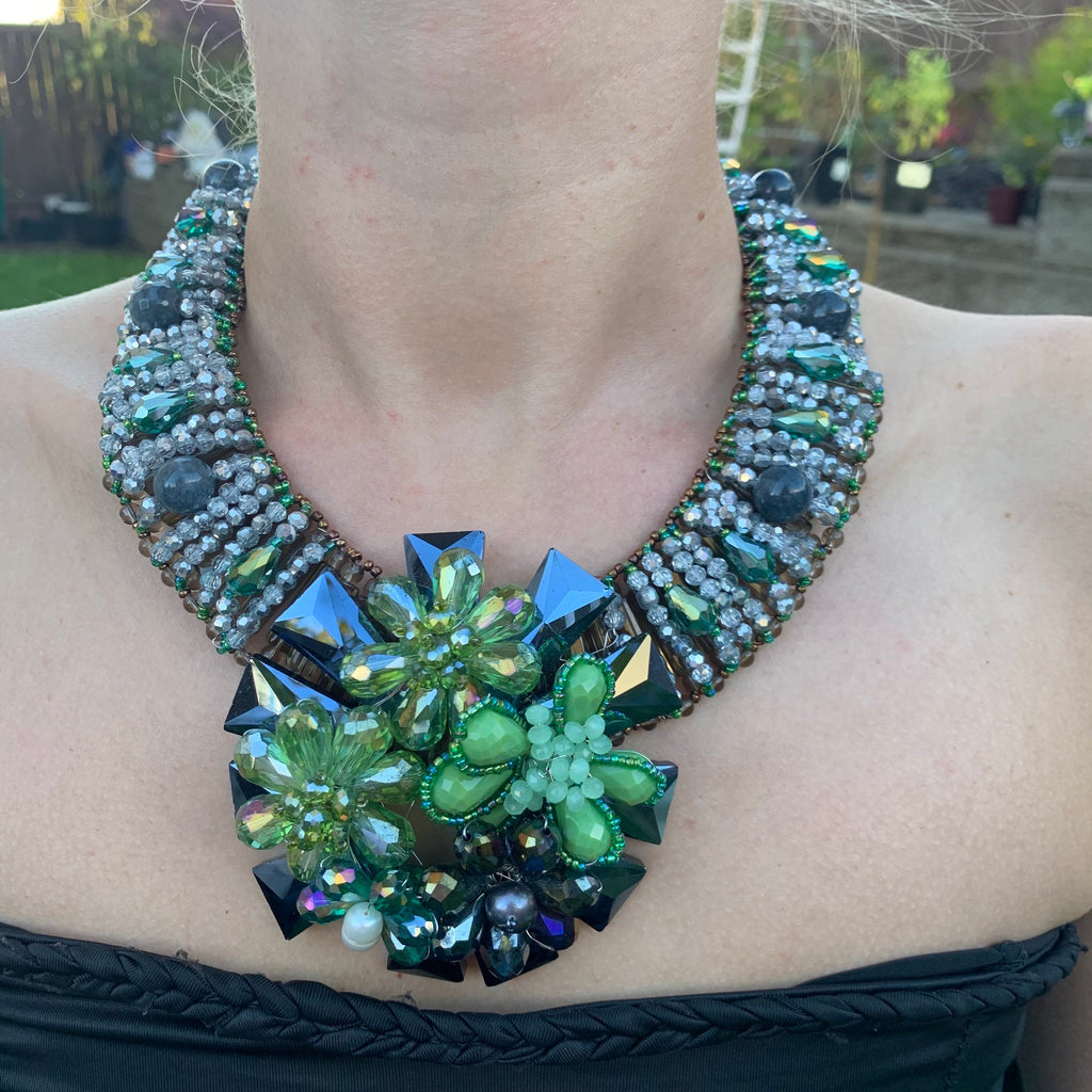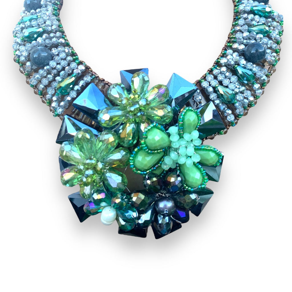 Handmade Designer Necklace 20" Circular Green Pendant Choker Party Wear