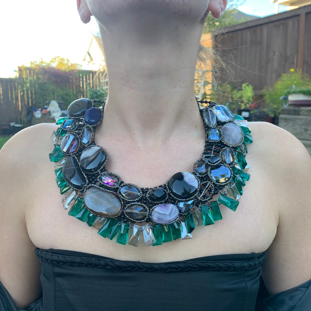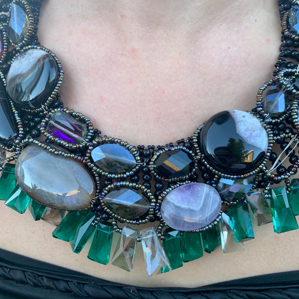 Handmade Necklace 20" Magnificent Cabochon Gemstones Fringe Choker