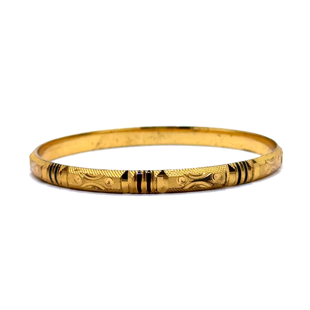 Celebrate the rich artistry of this ethnic statement bangle. Set against a luminous yellow gold plated base, this exquisite piece is masterfully detailed with intricate geometric patterns. The heritage-inspired engravings are accentuated to create a striking contrast and a deep, captivating texture, evoking a sense of timeless tradition. Perfect as a powerful standalone accessory or as the centerpiece of a curated stack, this bangle adds a bold touch of cultural elegance to any look.