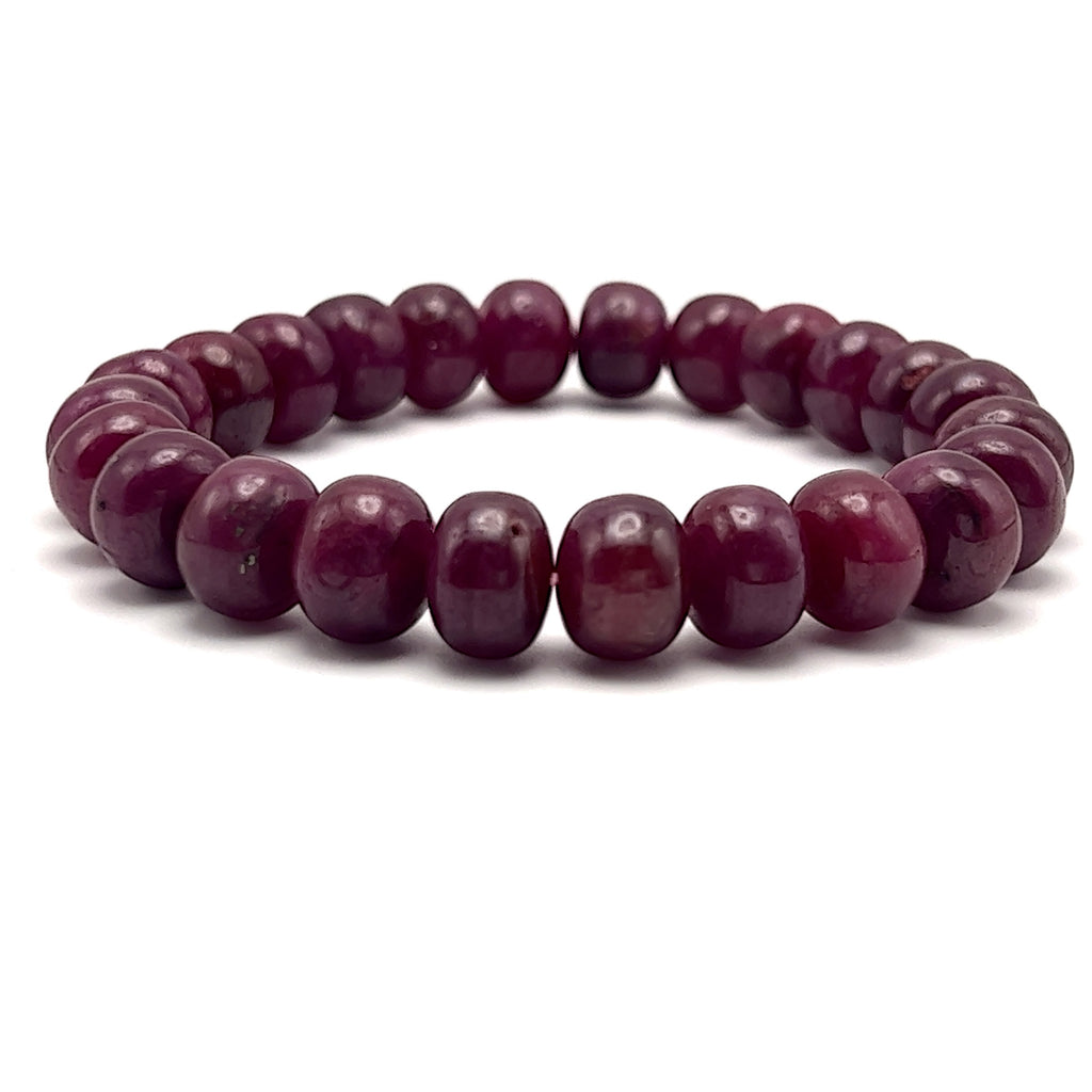 Natural Ruby Bracelet | Smooth 9-10mm Rondelle Beads 24 Pcs 171 Carats | Crimson Red VVS Clarity | July Birthstone Gemstone Jewelry