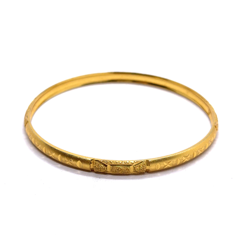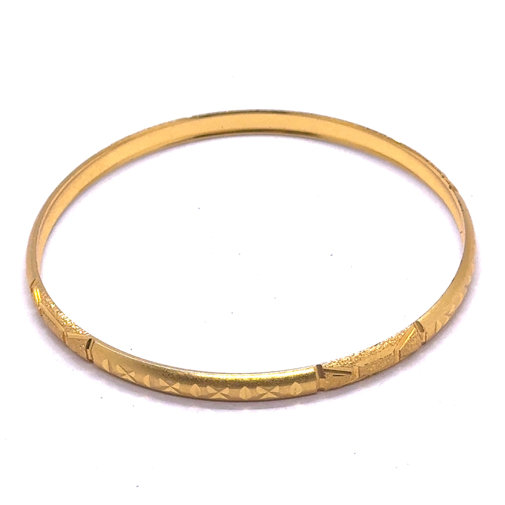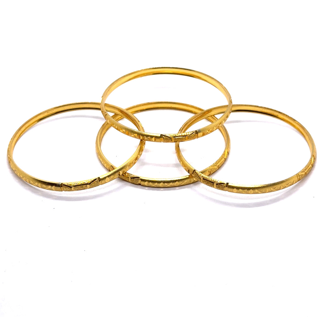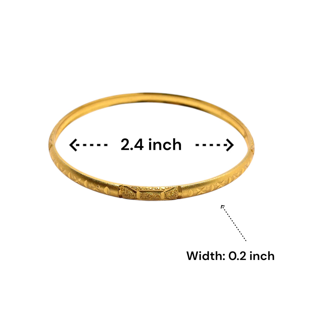 Celebrate timeless tradition and refined craftsmanship with these Yellow Gold Plated Bangles, featuring deep engraving, precise geometric motifs, and a rich traditional finish. Designed using electro gold plating, these bangles offer a durable, radiant glow that reflects the elegance of heritage Indian jewelry.
