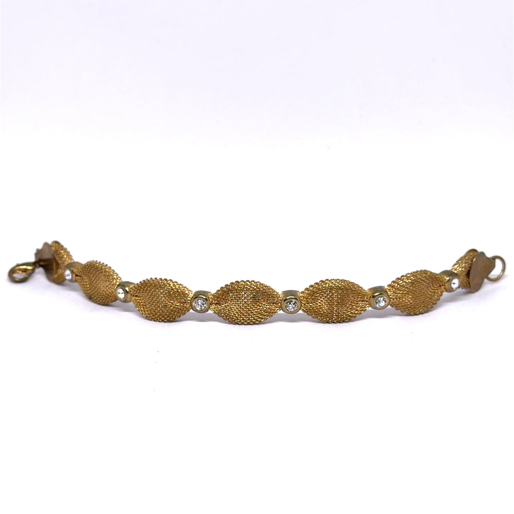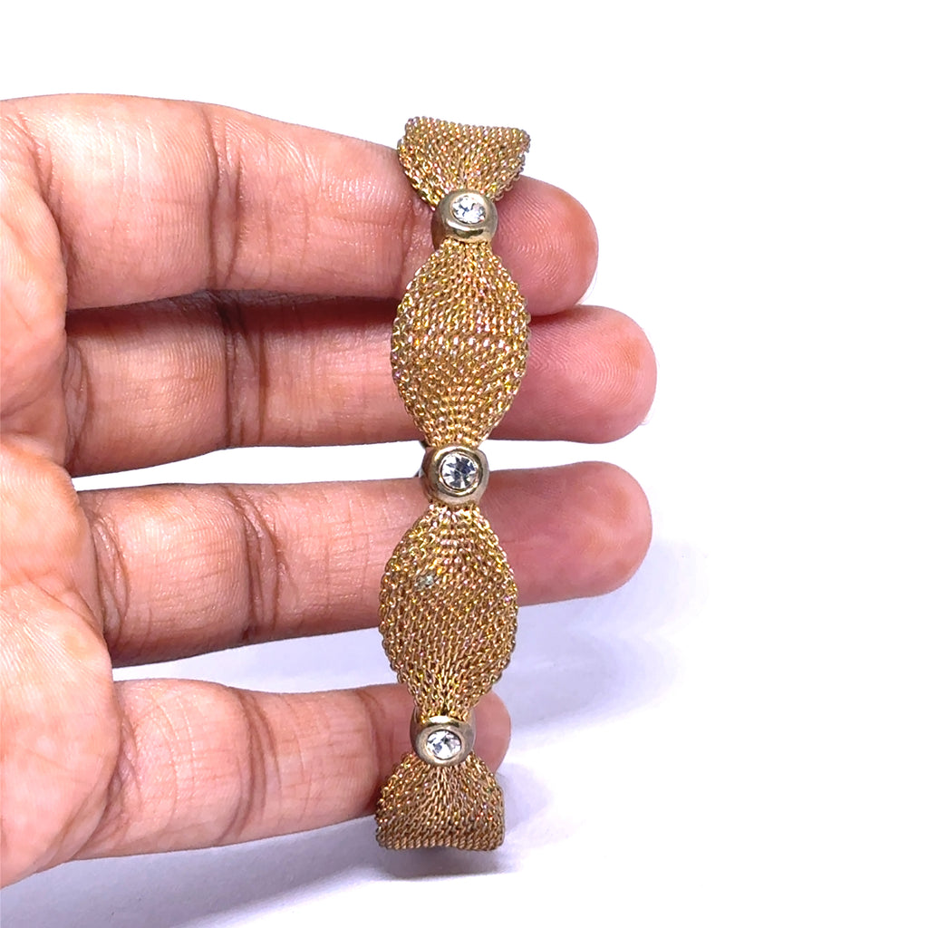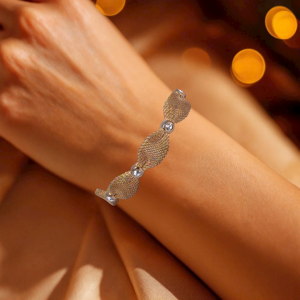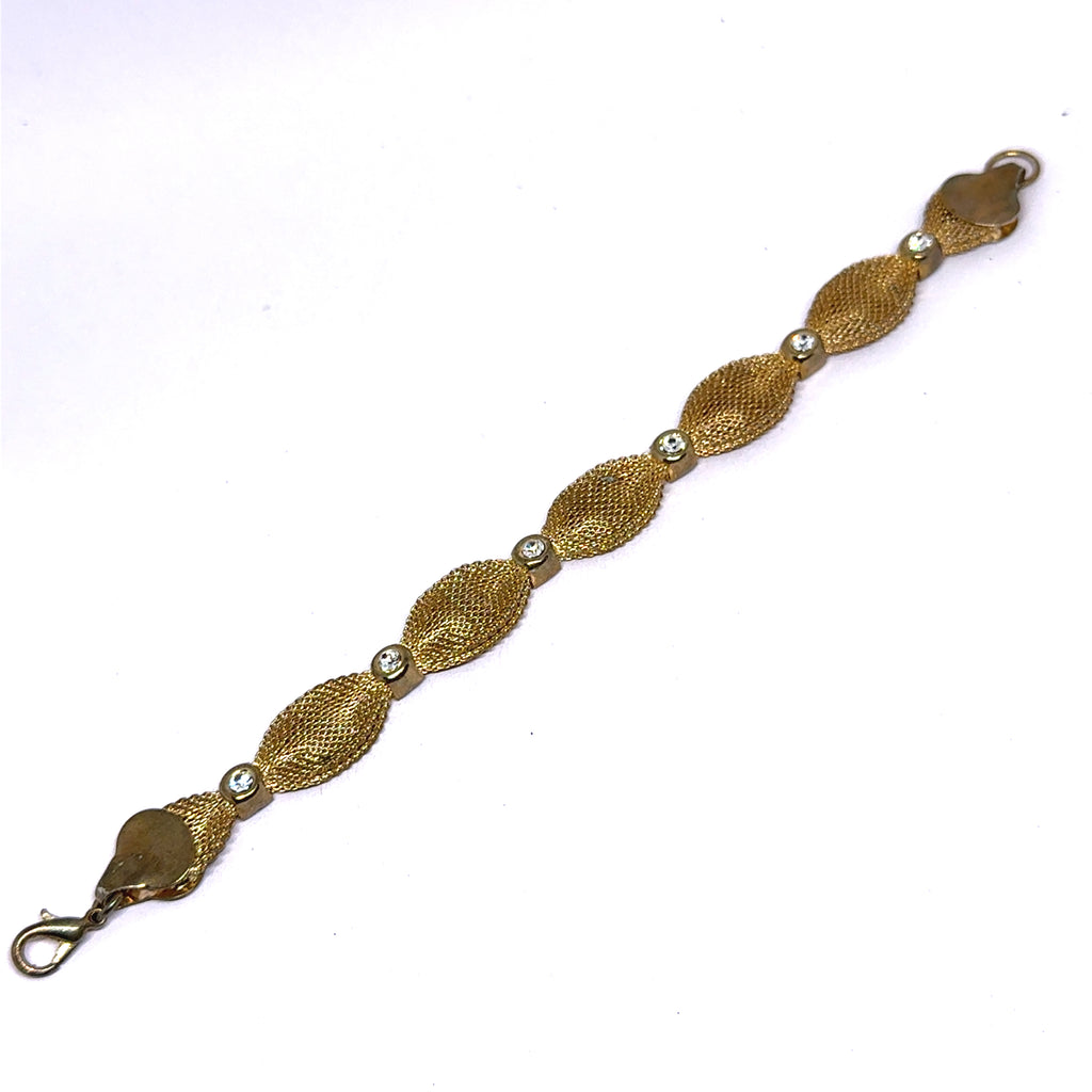 Celebrate the elegance of vintage artistry with this Woven Gold-Tone Mesh Bracelet, a captivating piece that blends delicate texture with sparkling detail. Designed with a beautifully braided mesh band, the bracelet features rhinestone-studded marquise links that bring a touch of glamour to its timeless structure.