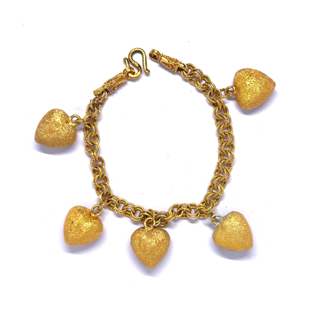 Celebrate the beauty of sentimental elegance with this Yellow Gold-Plated Delicate Linked Chain Bracelet, thoughtfully adorned with micron gold sand-brass heart charms. Designed for those who appreciate subtle symbolism, this bracelet blends a lightweight silhouette with romantic detail, making it a perfect expression of affection and grace.