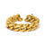 Each curb link is enhanced with diagonal etching, creating a sense of movement and texture that adds visual depth and a touch of architectural flair. The yellow gold plating offers a sleek, high-shine finish, making it a standout accessory that pairs effortlessly with both casual and formal looks.