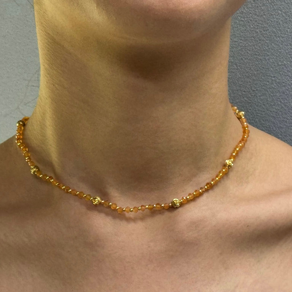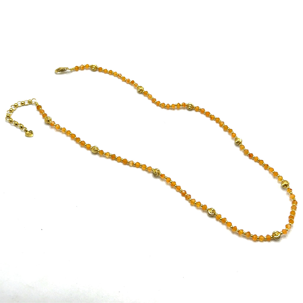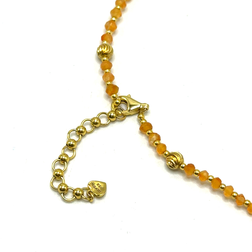 Celebrate the vibrant energy of vitality with this stunning 925 sterling silver station necklace adorned with natural Carnelian faceted rondelle beaded gemstones and luxurious gold charms. Embracing the essence of Carnelian, revered as the vitality stone, this necklace inspires courage, creativity, and passion in everyday life. The warm orange hues of the faceted rondelle beads shimmer with fiery intensity, complemented by gold-plated stations for a sophisticated touch. Ideal for layering with other pieces or as a standalone statement, this handmade creation from JEWELNJOY suits bohemian styles, wellness routines, or thoughtful gifts for those seeking motivation and confidence. Crafted from genuine 925 sterling silver for lasting shine and skin-friendly wear, it's a must-have for any gemstone enthusiast's collection. Infuse your wardrobe with the empowering properties of Carnelian in this exquisite beaded necklace.