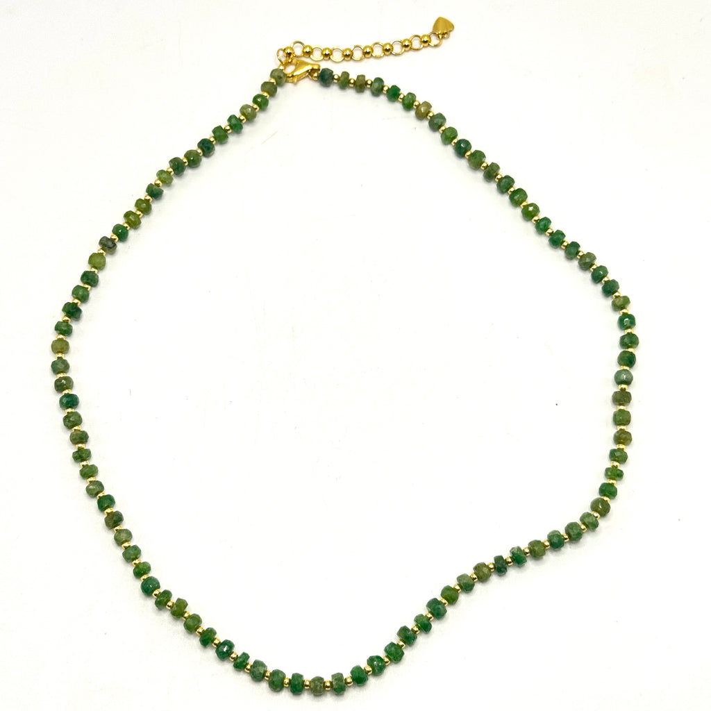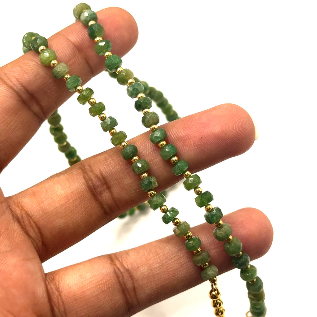 Celebrate timeless elegance and abundant prosperity with our stunning 925 sterling silver station necklace, adorned with natural emerald faceted rondelle beads gemstone necklace. Renowned as a powerful prosperity stone, each genuine emerald gemstone boasts rich, verdant green tones that evoke growth, renewal, and positive energy. Meticulously handcrafted, this beaded necklace pairs the captivating sparkle of faceted emeralds with polished sterling silver accents, creating a versatile piece that elevates any ensemble-from casual daytime looks to evening sophistication. Experience the reputed healing benefits of emerald, including enhanced clarity and emotional balance, all while enjoying its lightweight design and secure clasp for all-day comfort. Ideal for gifting or personal indulgence, this luxury gemstone jewelry is a must-have for those seeking both beauty and meaningful symbolism.