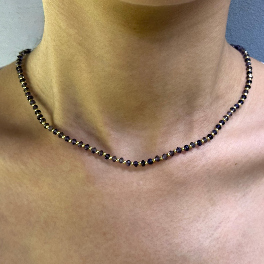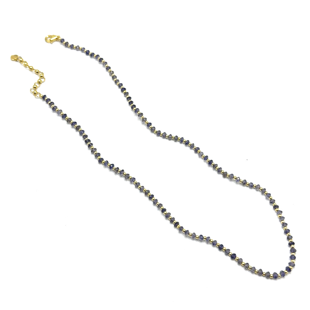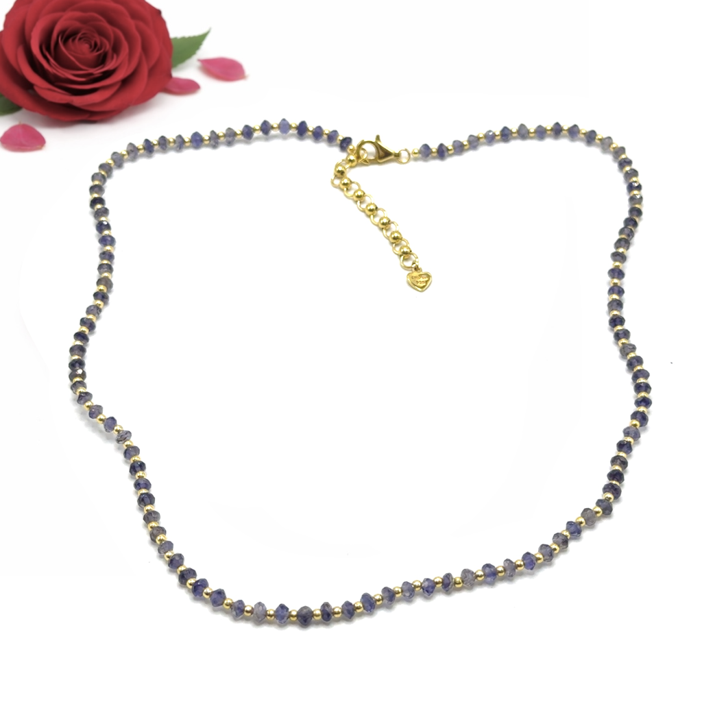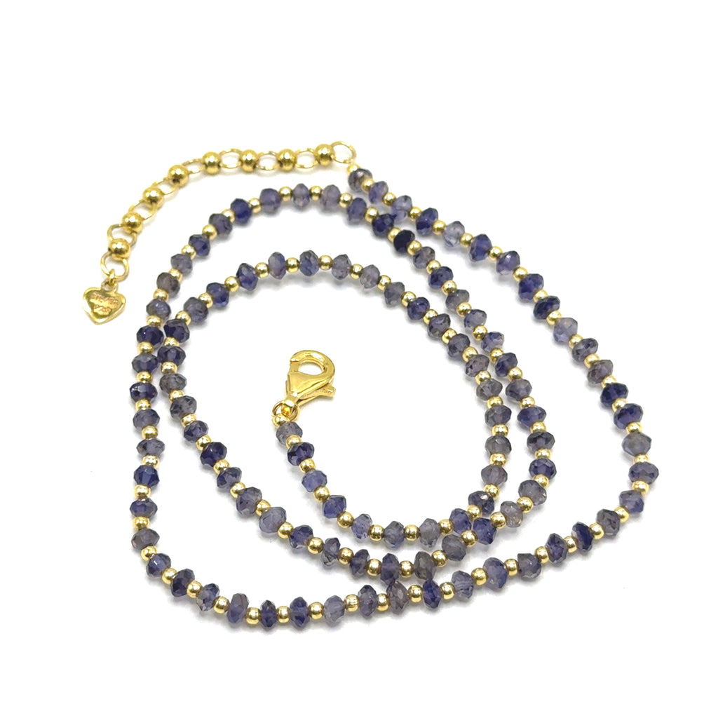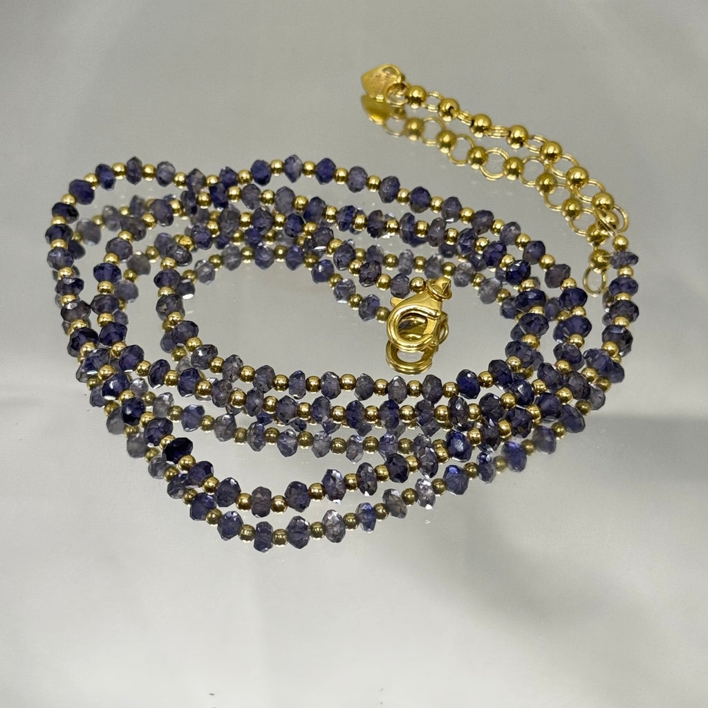 Celebrate intuition and inner vision with our mesmerizing 925 sterling silver station necklace, featuring natural iolite faceted rondelle beaded gemstones and plain silver ball charms. Aligned with the third eye chakra, each genuine iolite radiates deep violet-blue hues that symbolize insight, spiritual awareness, and clarity of thought. Expertly handcrafted with polished sterling silver stations for subtle elegance, this versatile beaded necklace enhances any style-perfect for daily wear or meditative practices. Embrace iolite's reputed healing properties, fostering intuition, emotional release, and higher consciousness, in a lightweight design with a secure clasp for all-day comfort. An ideal gift for seekers of wisdom or anyone desiring luxurious, meaningful jewelry that awakens the third eye.