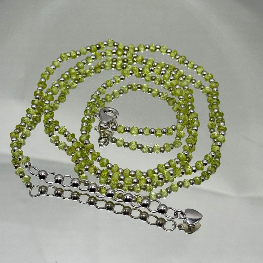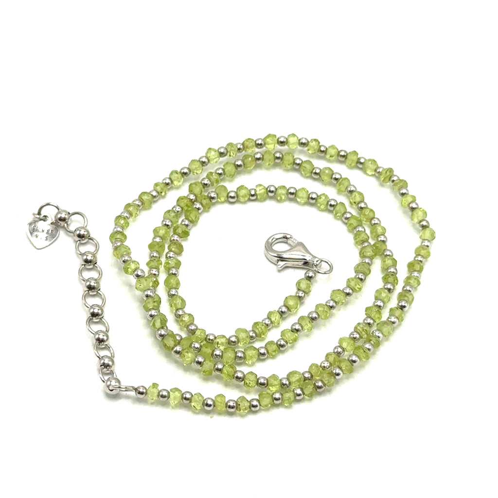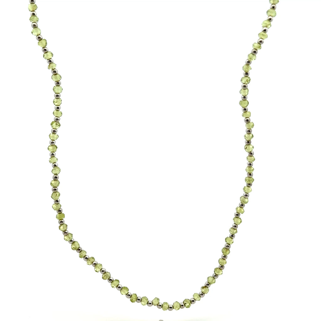 Celebrate the refreshing essence of energy renewal with this luminous 925 sterling silver station necklace featuring natural Peridot faceted rondelle beaded gemstones and sleek silver balls. Infused with the revitalizing properties of Peridot, known for promoting energy renewal, positivity, and emotional healing, this necklace serves as a daily reminder to recharge and embrace new beginnings. The soft green hues of the faceted rondelle beads sparkle with natural vibrancy, interspersed with polished silver balls for a modern, minimalist elegance. Ideal for layering or standalone wear, this handcrafted piece from JEWELNJOY enhances bohemian, casual, or wellness-inspired outfits, and makes a thoughtful gift for those seeking balance and vitality. Crafted from authentic 925 sterling silver for lasting brilliance and hypoallergenic comfort, it's a versatile gemstone accessory that harmonizes style with metaphysical benefits.