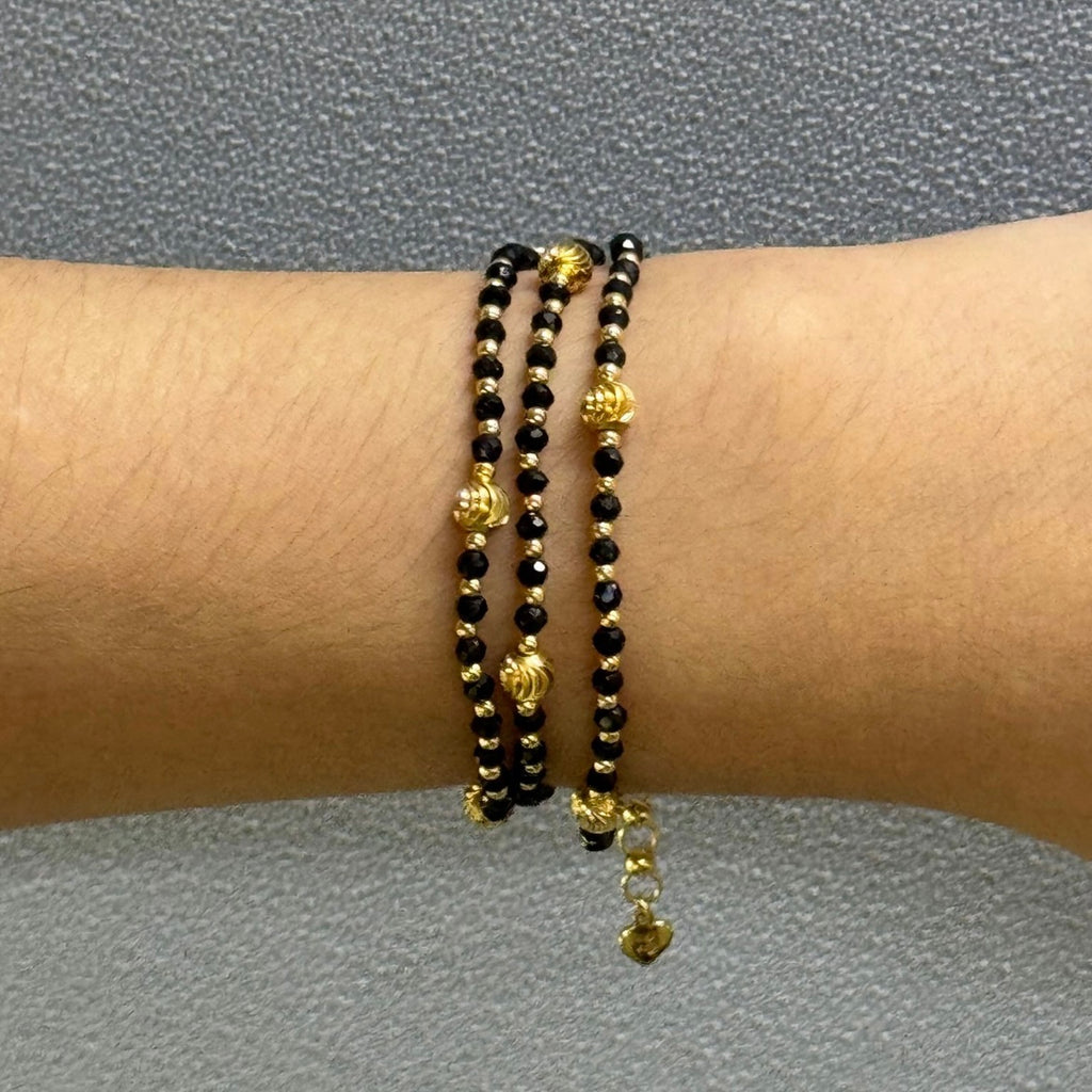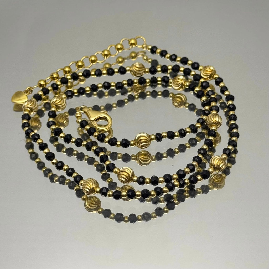 Celebrate inner strength and positive energy with this exquisite 925 sterling silver station necklace. Featuring natural spinel faceted rondelle beaded gemstones in sleek black hues, accented with golden charms that symbolize resilience and vitality, this piece is designed to empower and protect. The lightweight sterling silver chain with secure clasp ensures comfortable all-day wear, perfect for layering or as a standalone statement. Known for its grounding and energizing properties, spinel promotes strength and balance, making this necklace an ideal thoughtful gift for birthdays, anniversaries, or self-motivation.