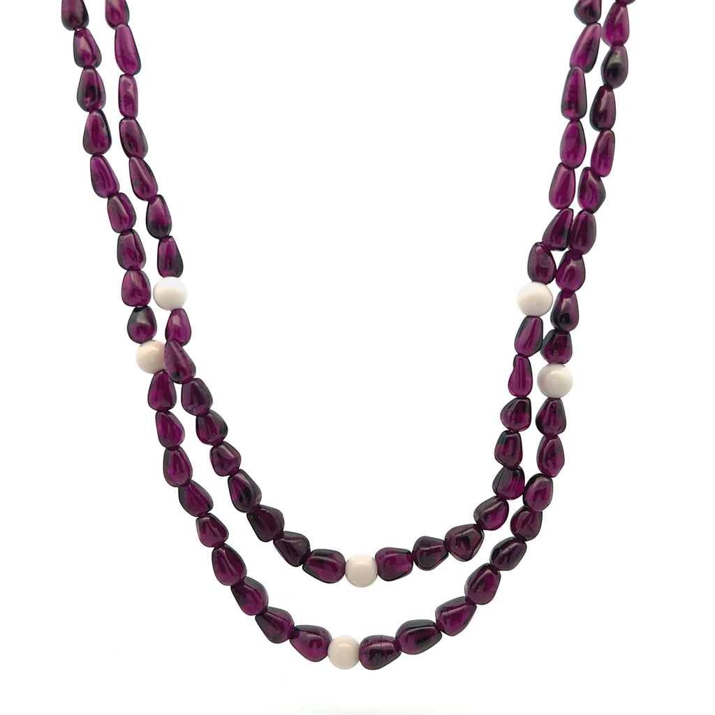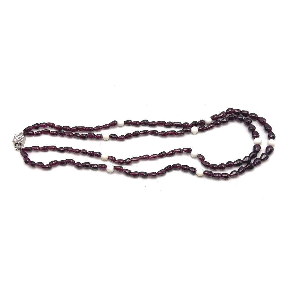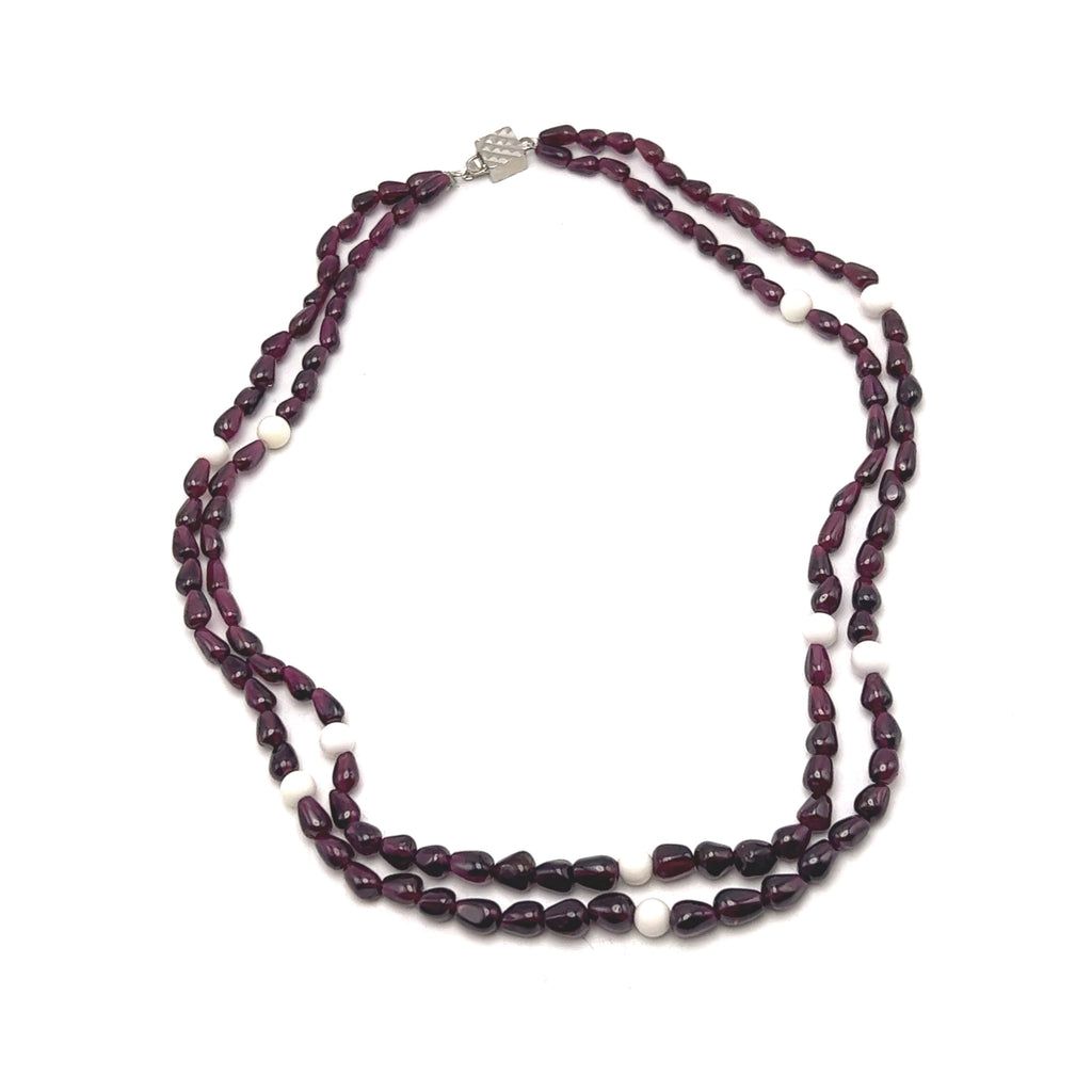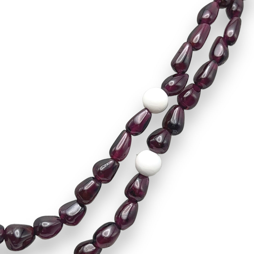 Each gemstone is carefully selected and polished to highlight its natural character, while the thoughtful arrangement ensures a graceful drape and comfortable wear. Garnet is traditionally associated with passion, strength, and grounding energy, while agate is admired for its stabilizing and calming qualities. This necklace is perfect for elegant everyday wear or special occasions, offering understated beauty through authentic, handcrafted design.