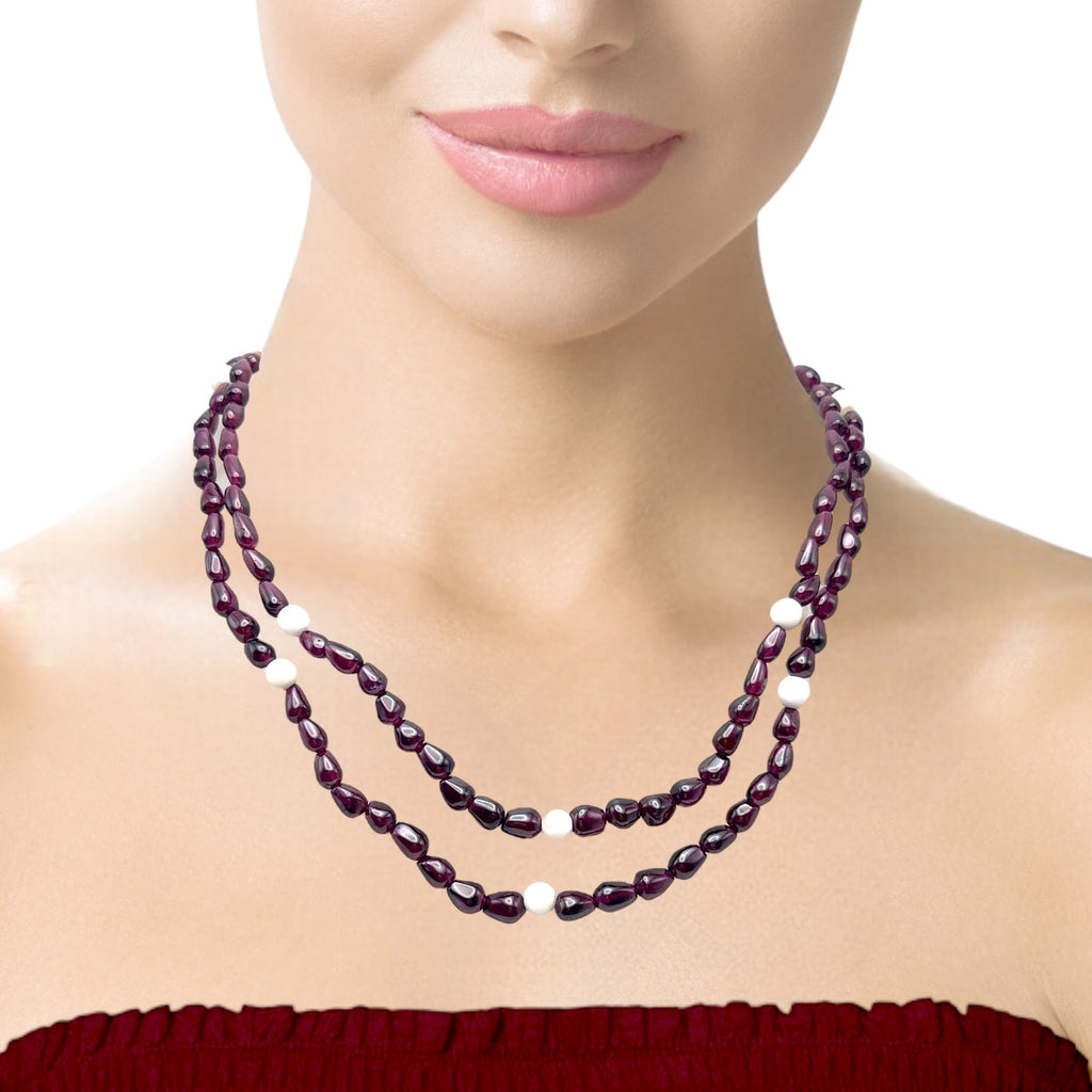 Celebrate natural harmony and refined craftsmanship with this handmade natural Garnet and Agate gemstone beaded necklace. Designed with smooth, plain drop-shaped garnet beads, the necklace is accented with round agate stones that add subtle contrast and visual balance. The deep red tones of garnet pair beautifully with the soft, neutral shades of agate, creating a timeless and versatile design.