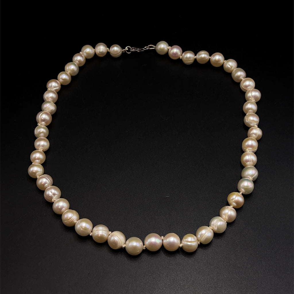 Natural Freshwater Pearl 9mm Cream Ringed Necklace 18.7inch Modern Pearl Jewelry for Confidence and Calm