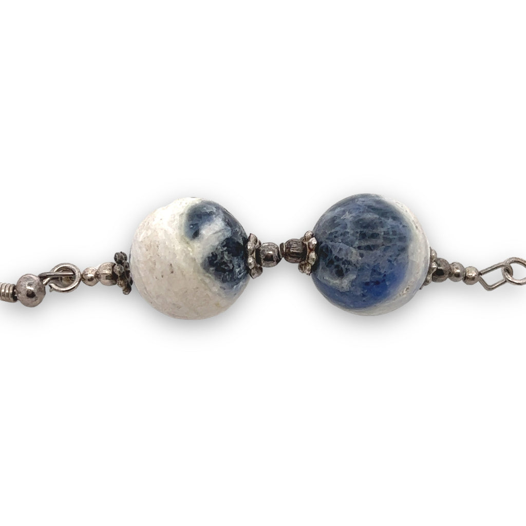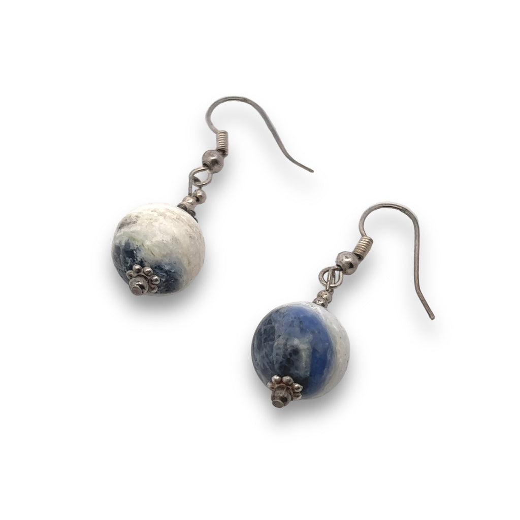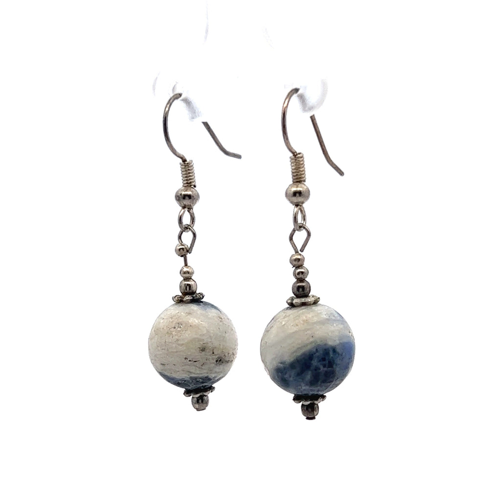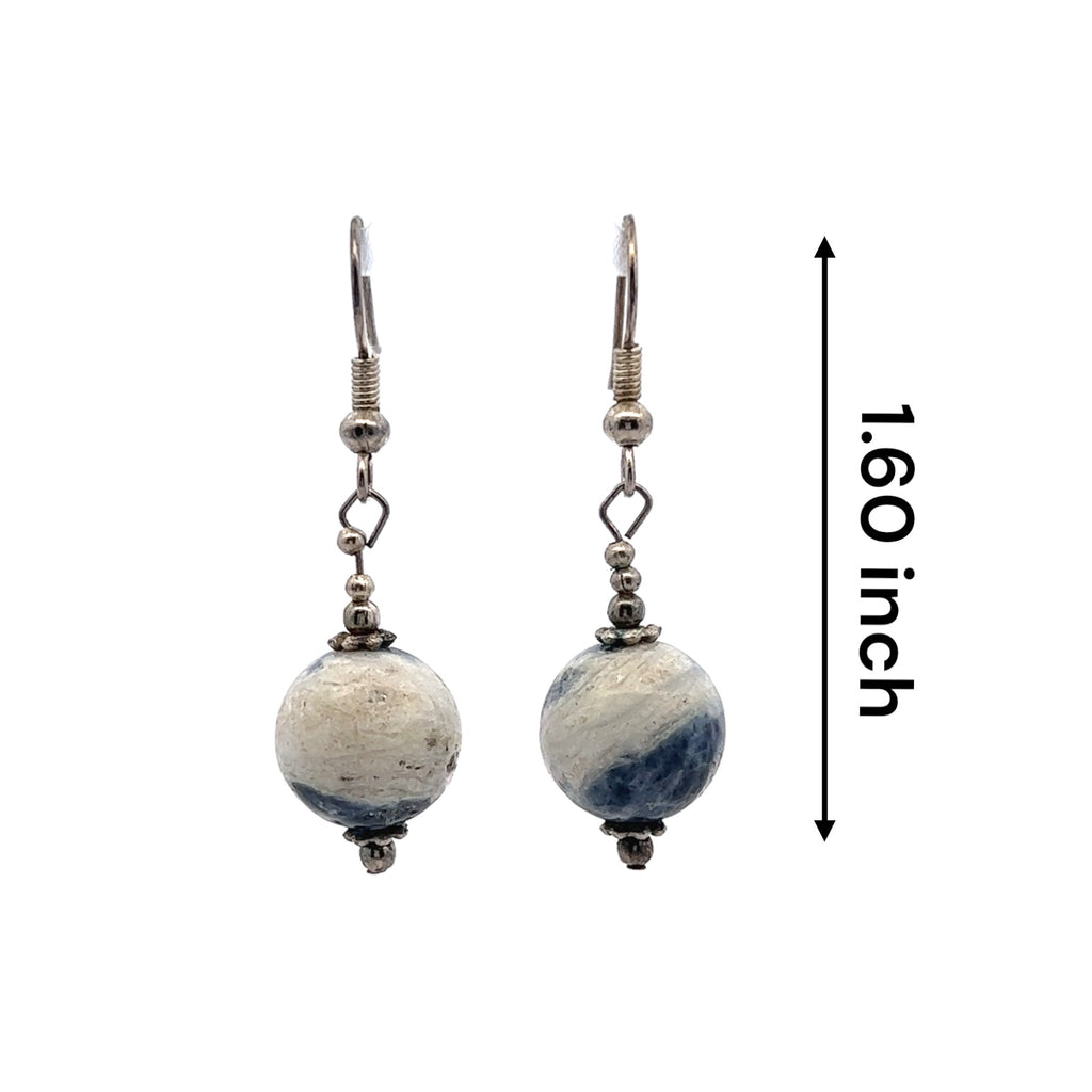 Blue White Sodalite 12mm Ball Plain Dangle Gemstone Earrings