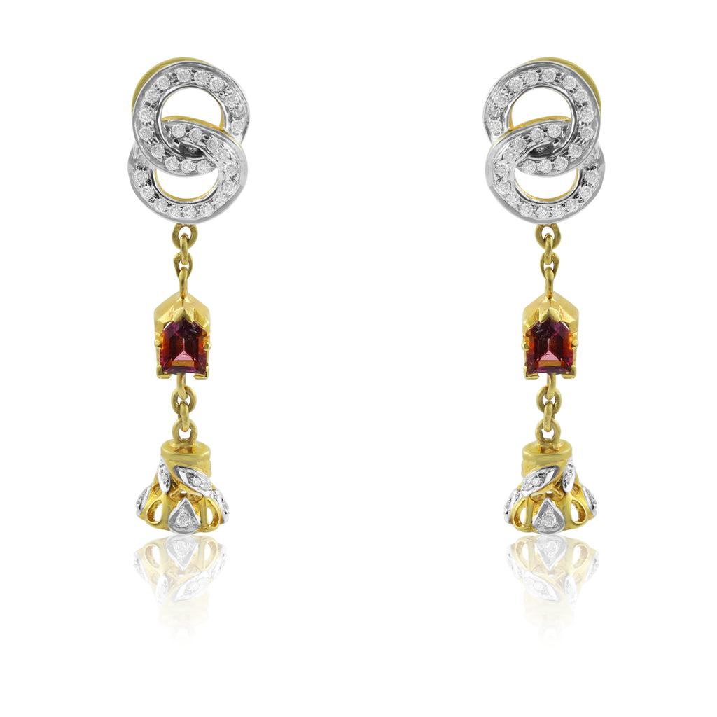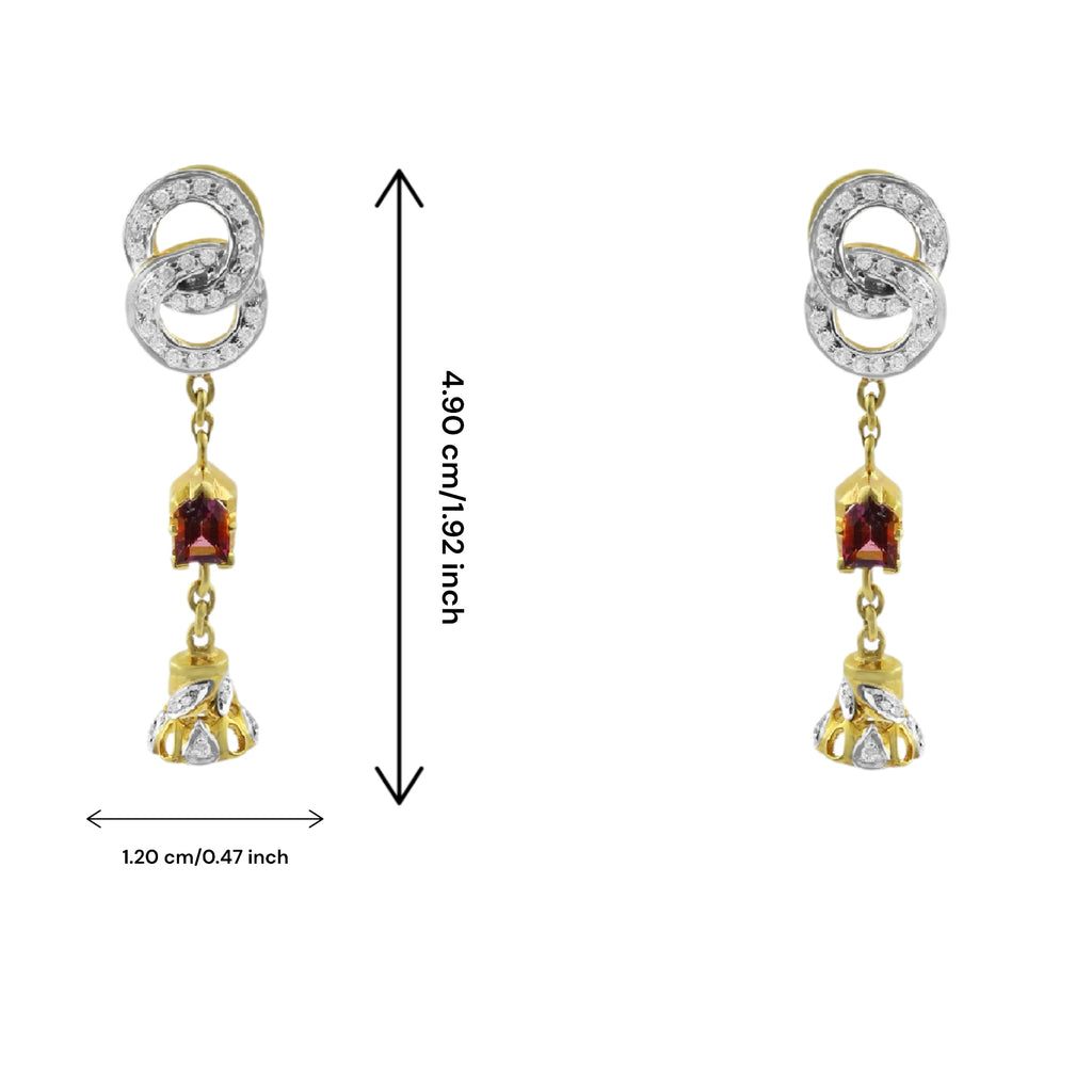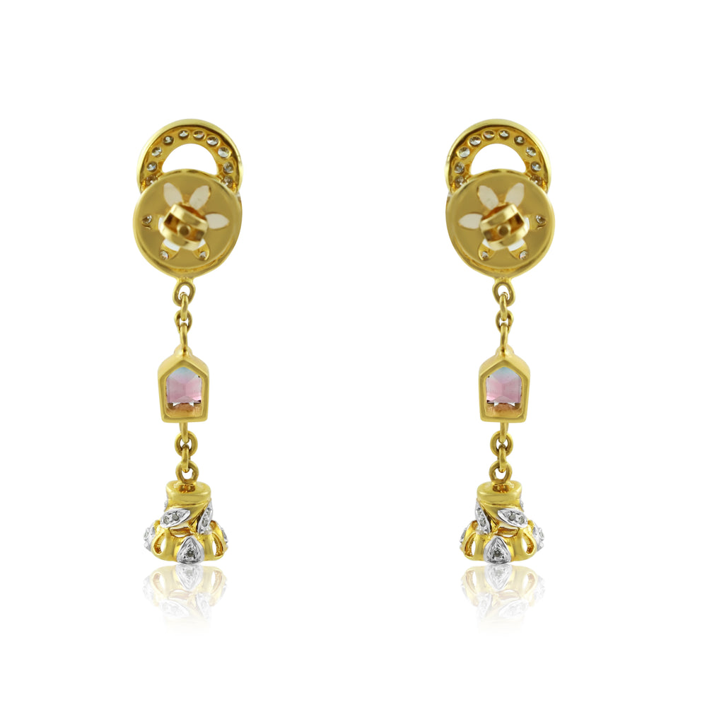 18K Yellow Gold Pendant Earring with Natural Round Diamond & Tourmaline Drop Design Jewellery Set