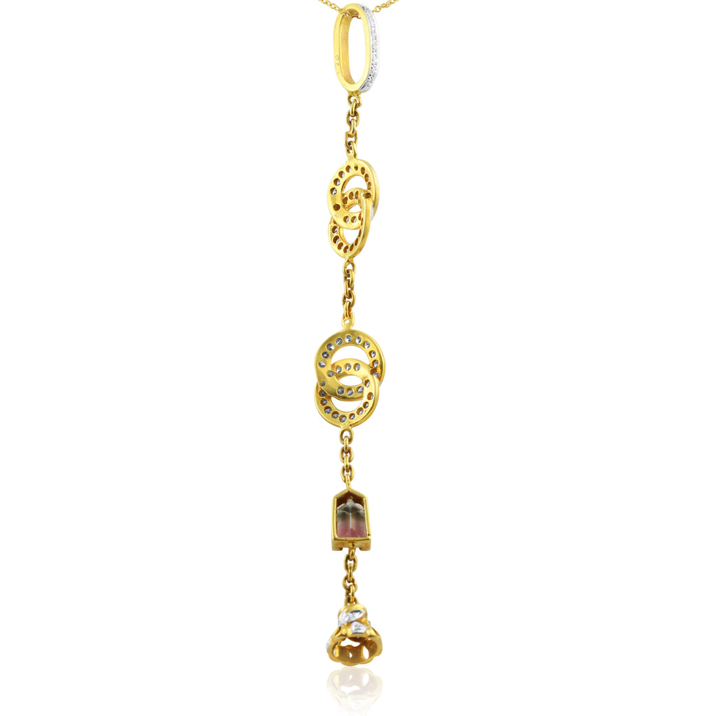 Celebrate your union with elegance in this stunning Pendant and Earring Set, a chic and glamorous choice from our Bridal Collection. Inspired by iconic designer motifs, this set is crafted in lustrous 18K Yellow Gold and features interlocking links paved with brilliant Natural Diamonds. The design is beautifully highlighted by Tourmaline and other richly-hued gemstones.