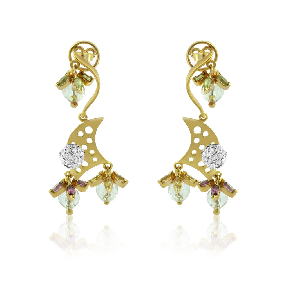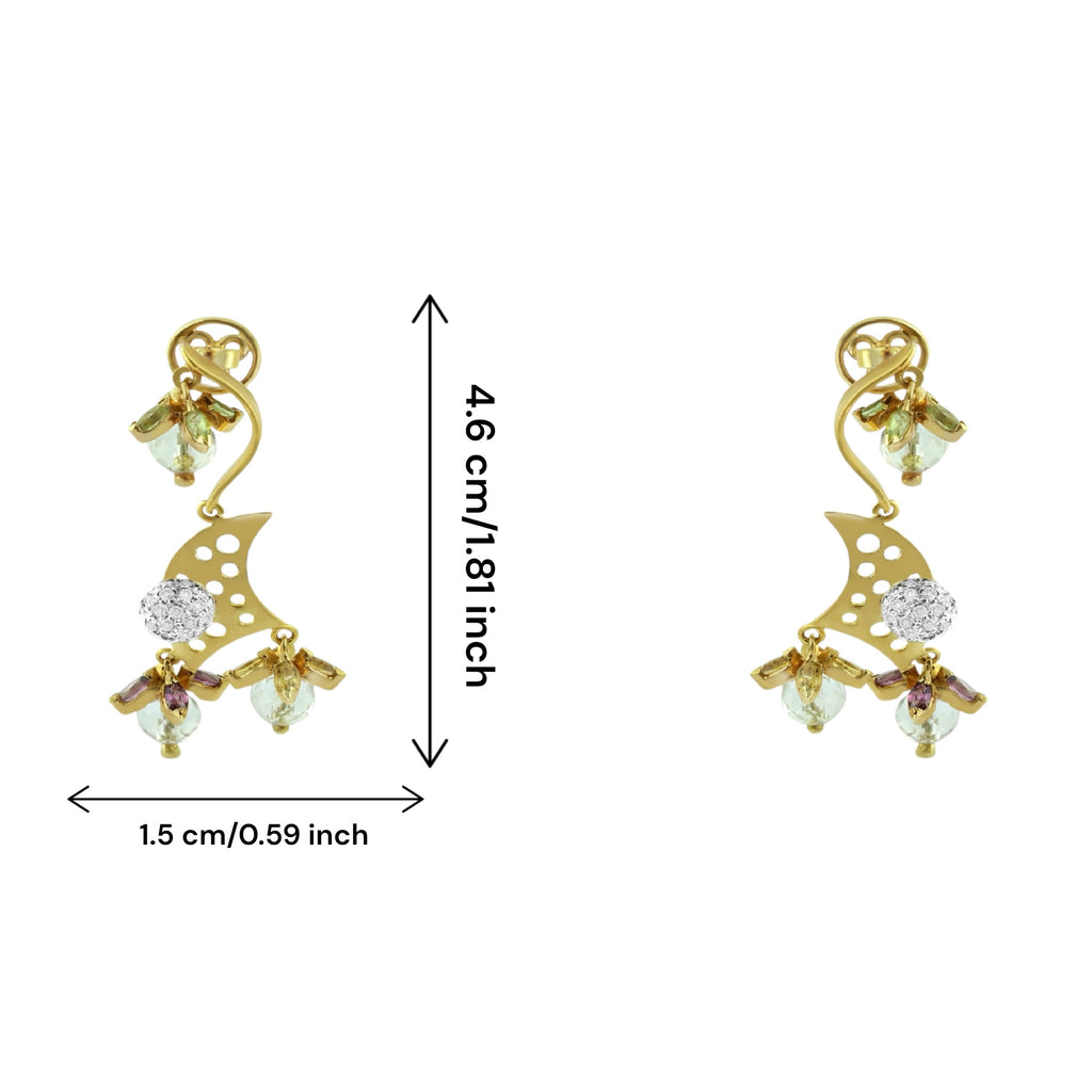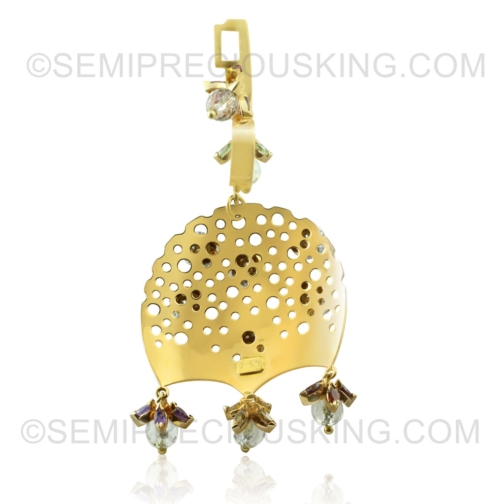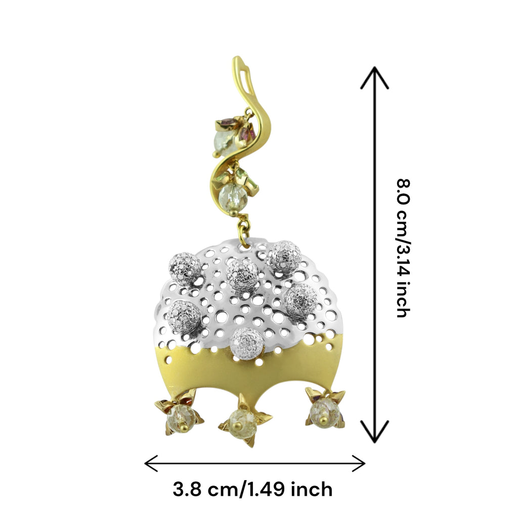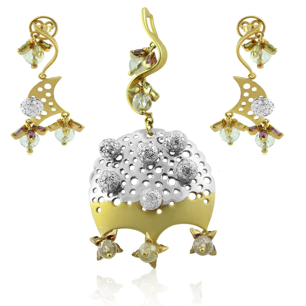 18K White & Yellow Dual Gold Pendant Earring with Natural Round Diamond & Semi Precious Domed Chandelier Jewellery Set