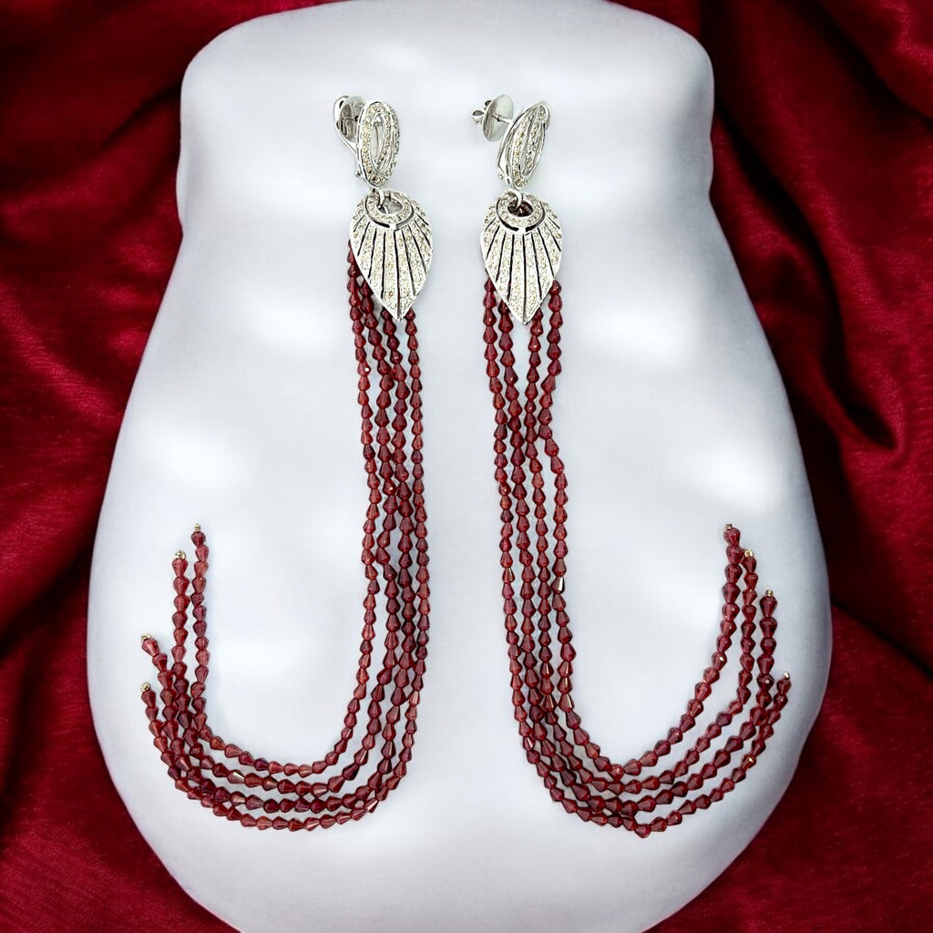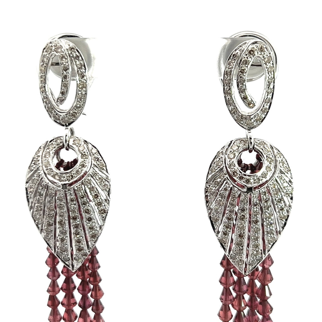 18K White Gold Shoulder Duster Earring With Natural Diamond & Rhodolite