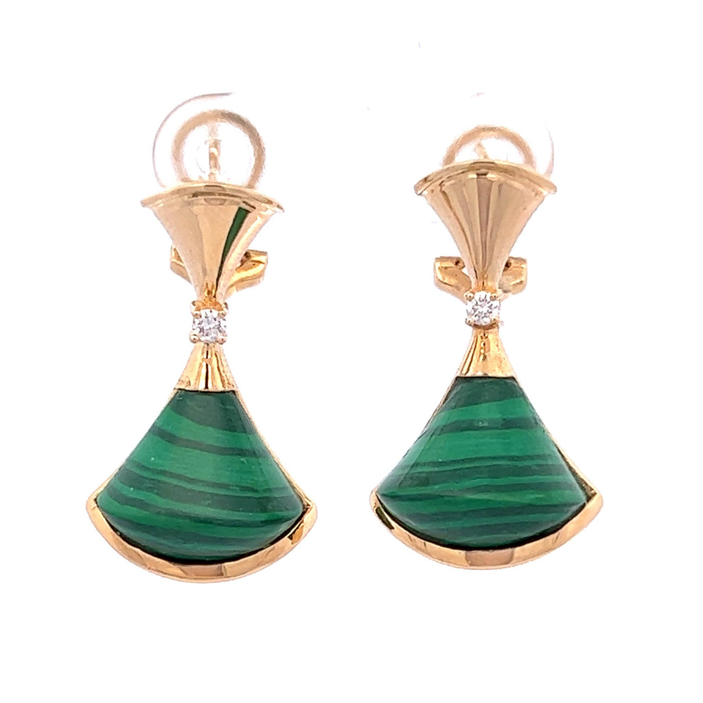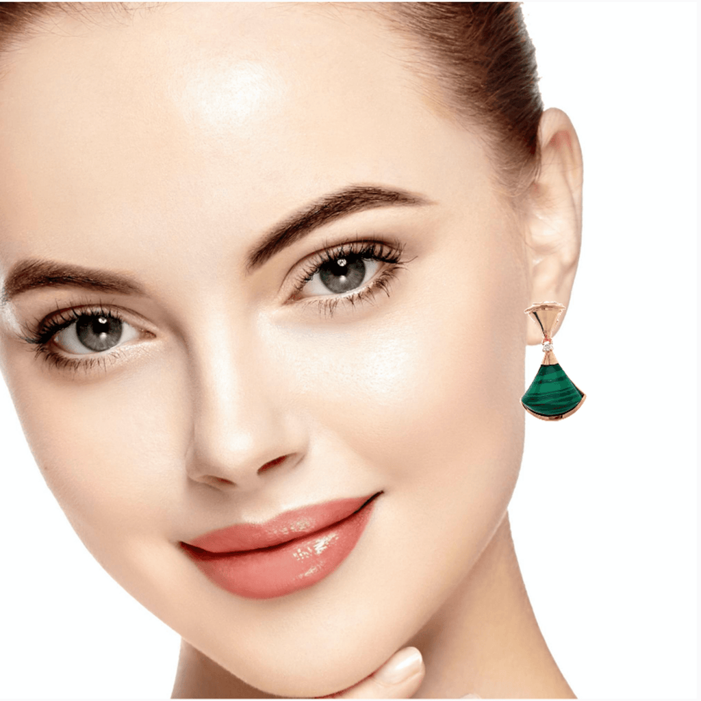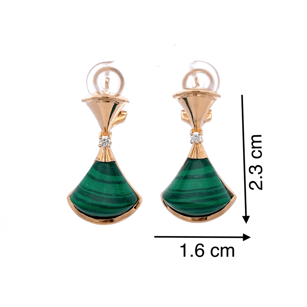 18K Rose Gold Natural Diamond Malachite Fancy Big Fan Unique Earring