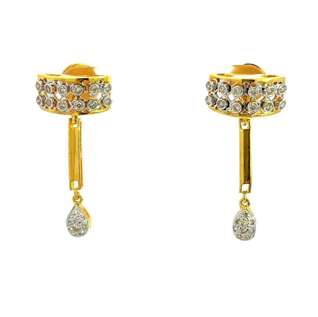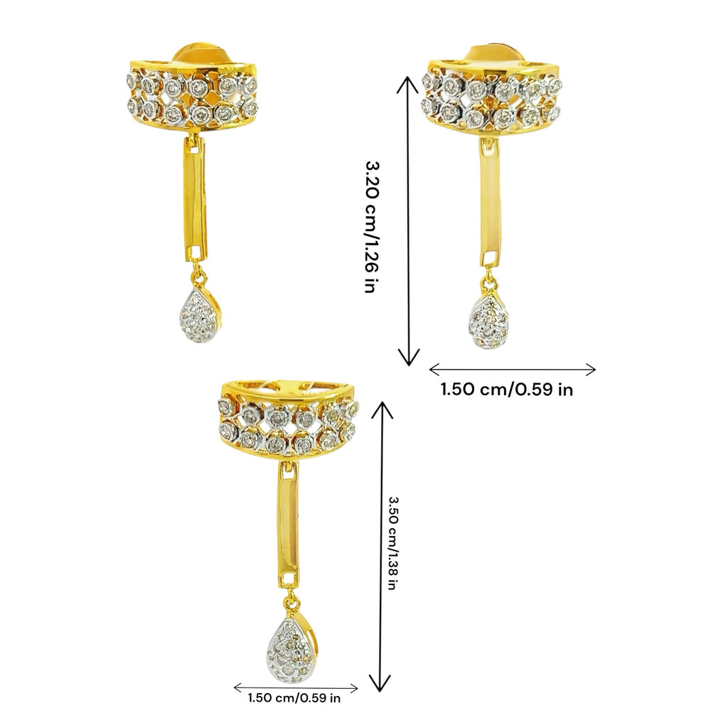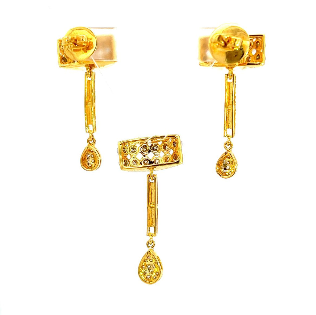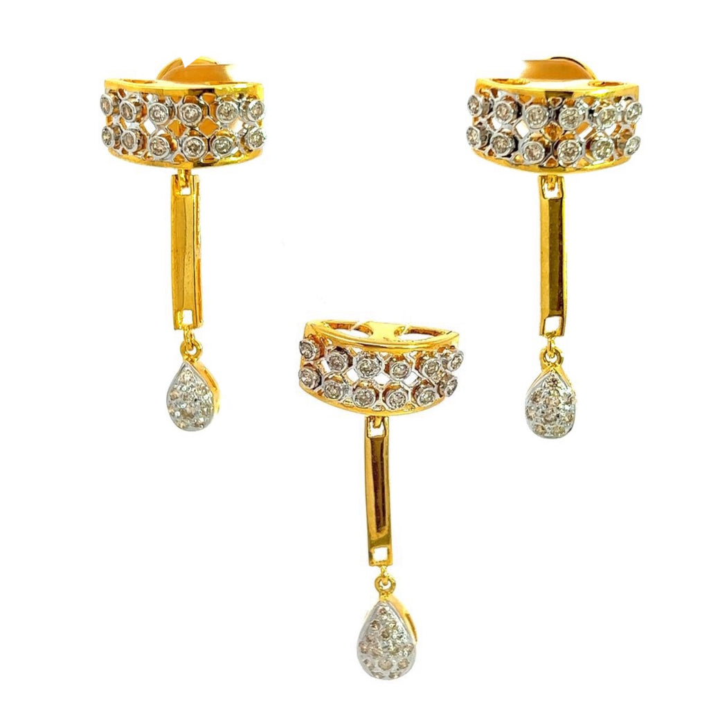 18K Two Tone Gold Natural Diamond Unique Pendant Earring Set Jewelry