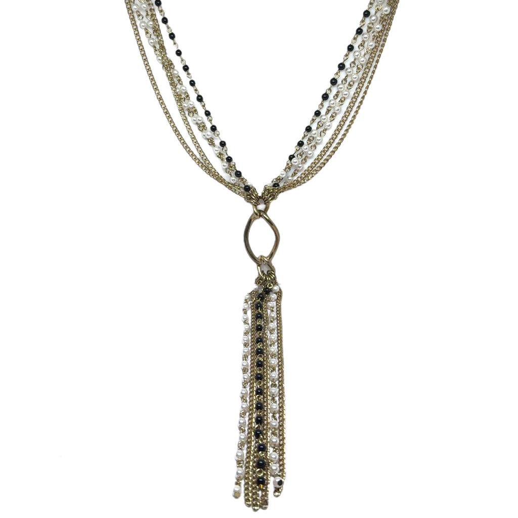 A delicate lariat featuring stationed simulated pearls—elegant for evenings and events.