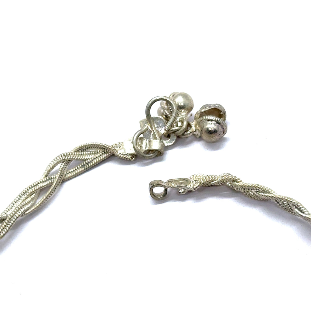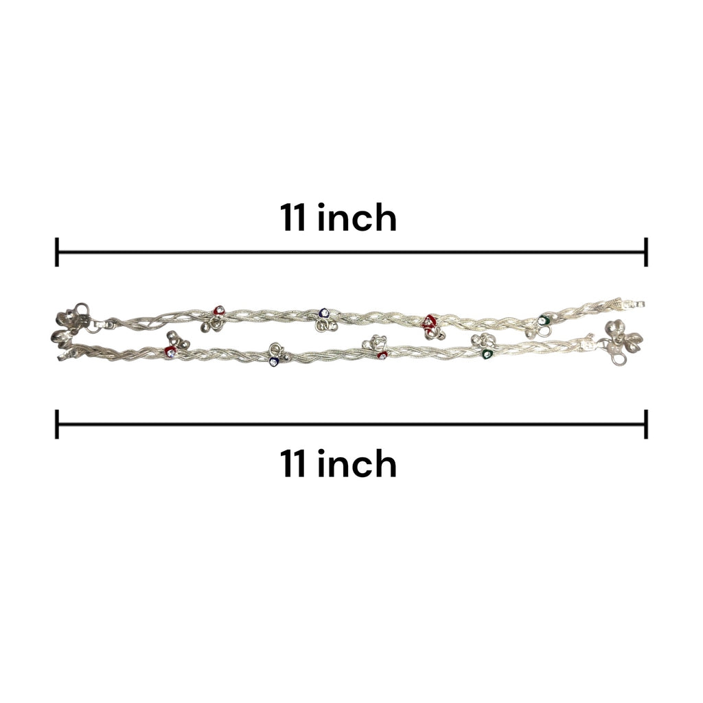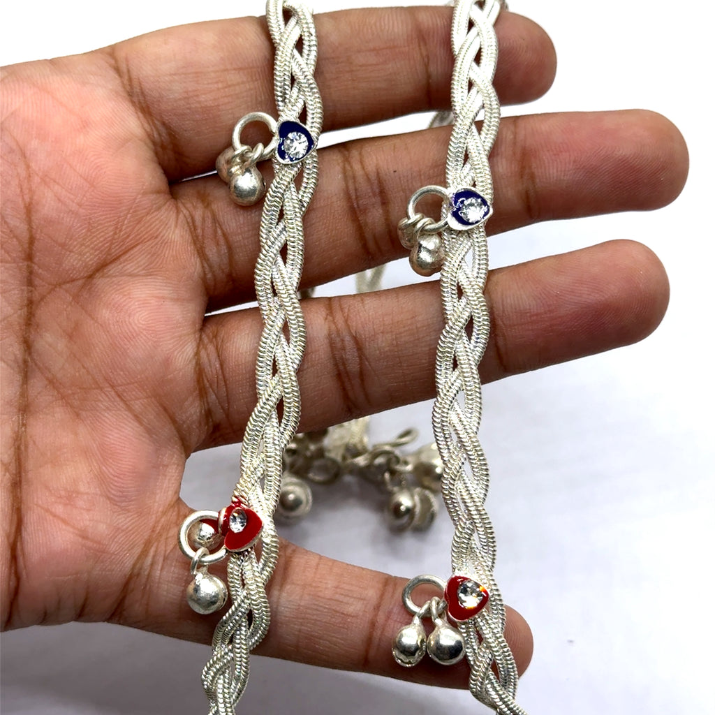 Celebrate playful elegance with this charming pair of German silver anklets. These beautiful anklets feature a stylishly twisted rope chain design, brought to life with delicate dangling charms that add a touch of whimsical movement with every step. A pop of vibrant red beading provides a captivating contrast to the bright, silvery finish of the German silver. Perfect for adding a free-spirited and musical jingle to your look, this pair is a delightful accessory for both casual and festive occasions.
