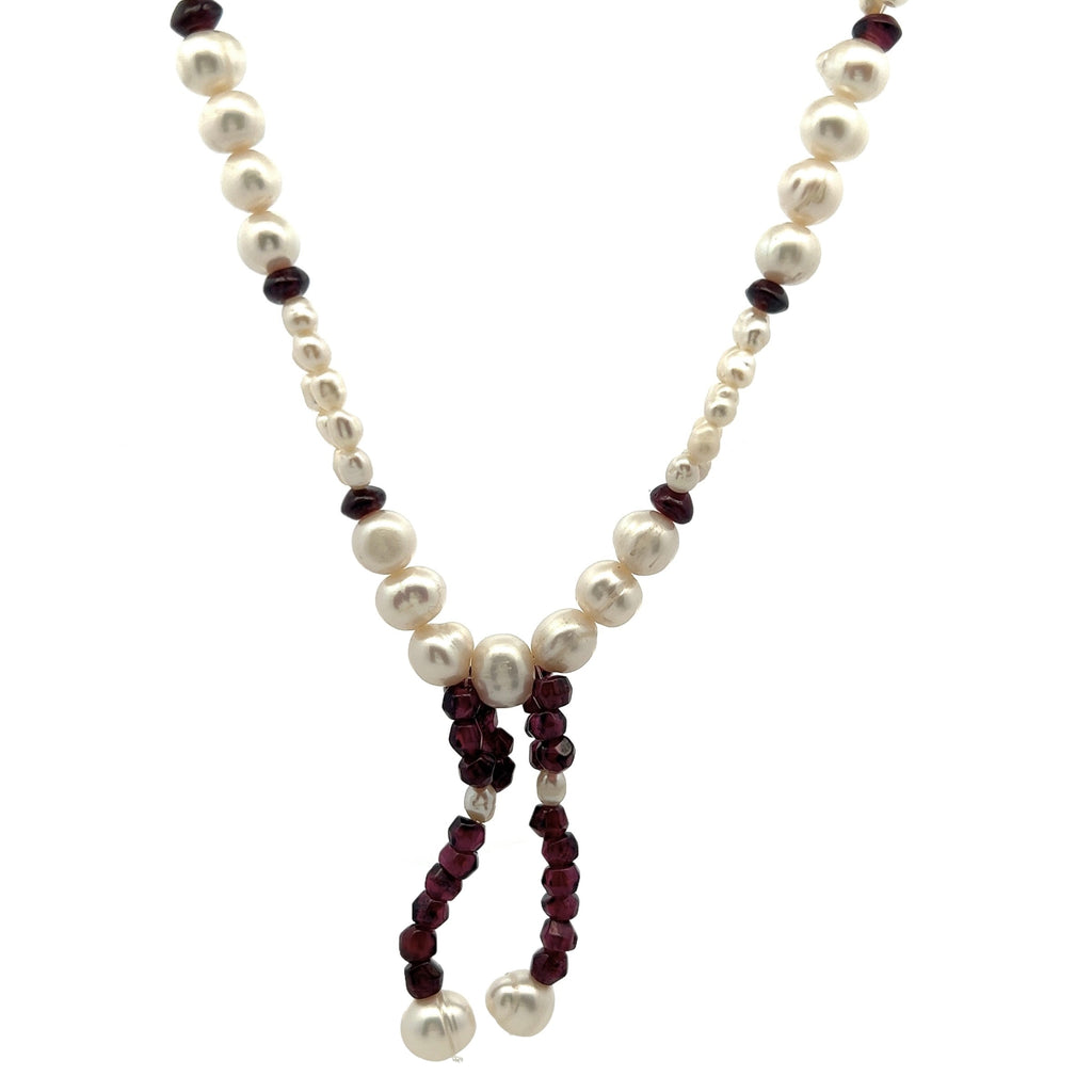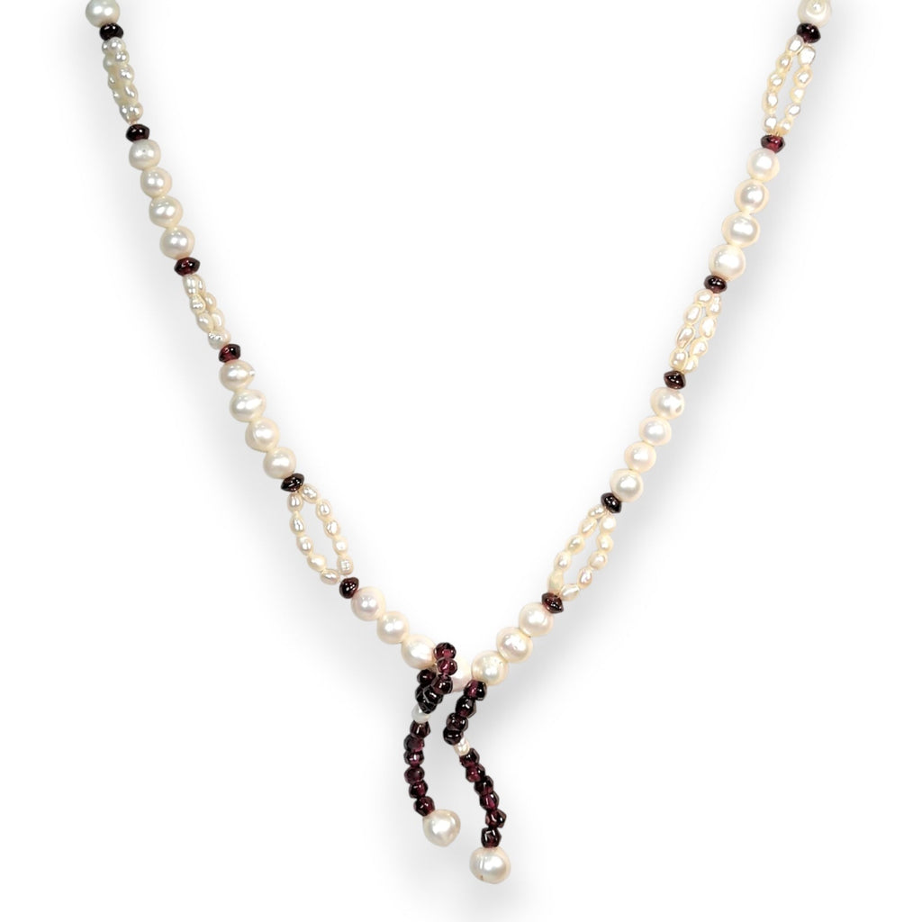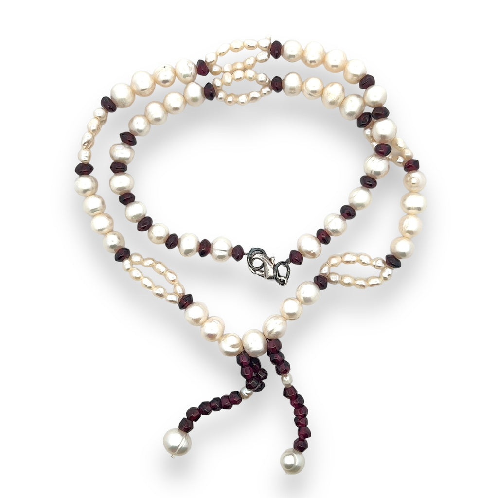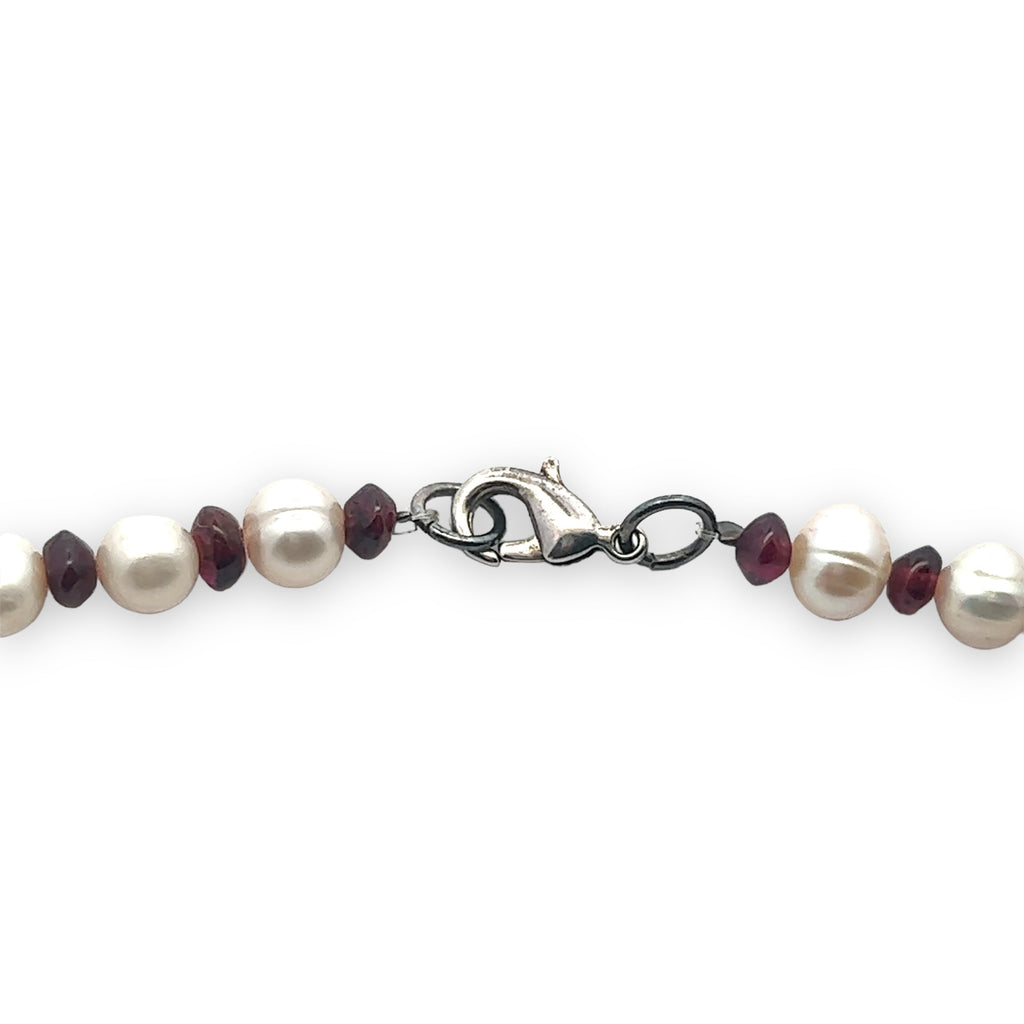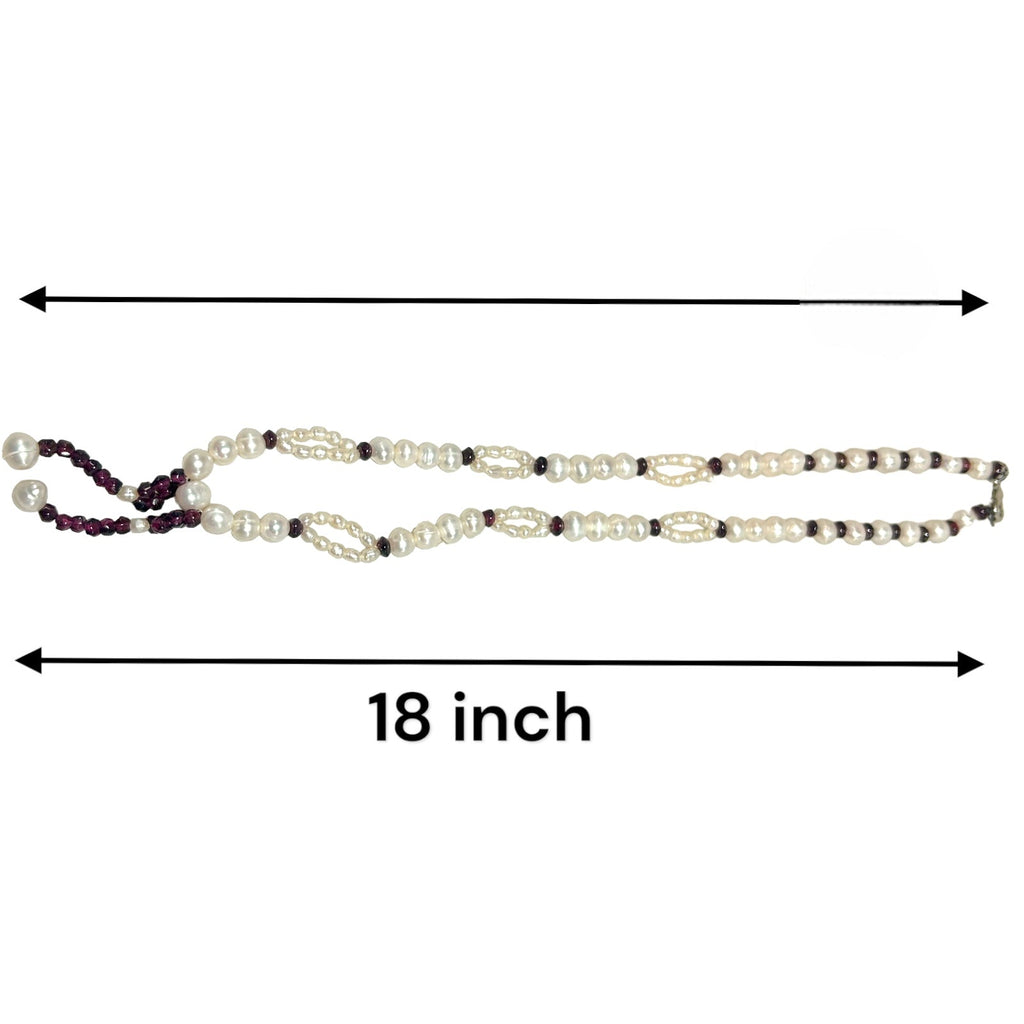 Natural Garnet Rondelle & Pearl Gemstone Crafted Necklace