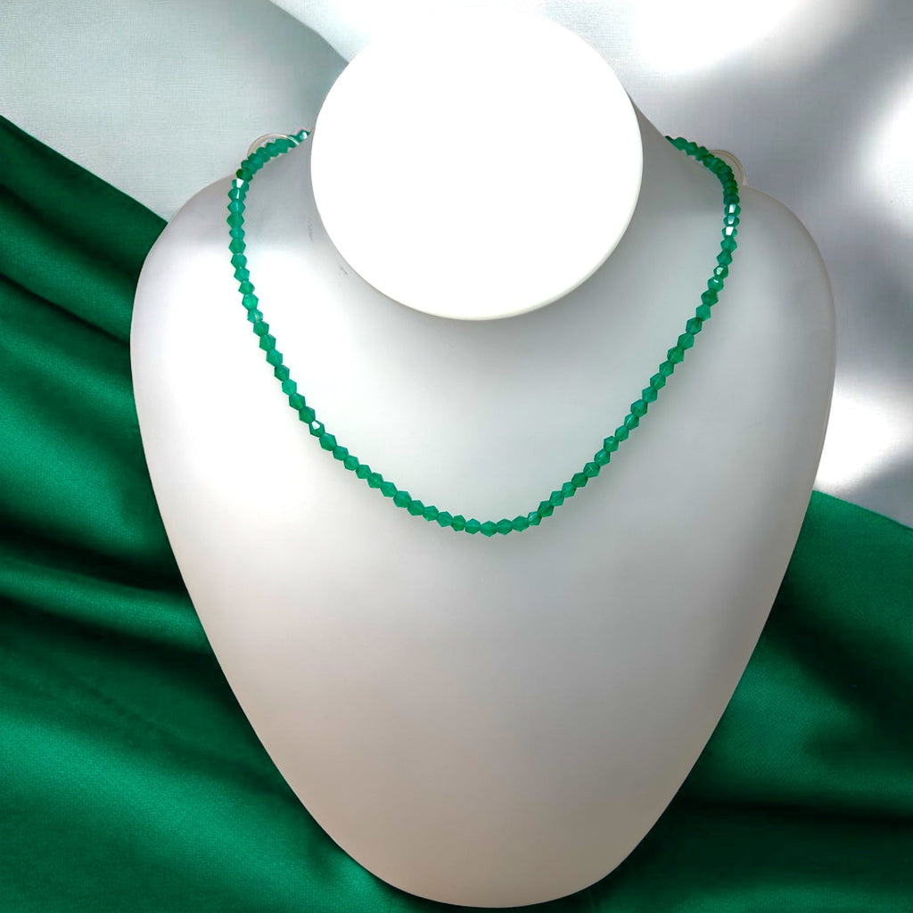 Natural Green Onyx Hexagon Facet Cut Semiprecious Necklace