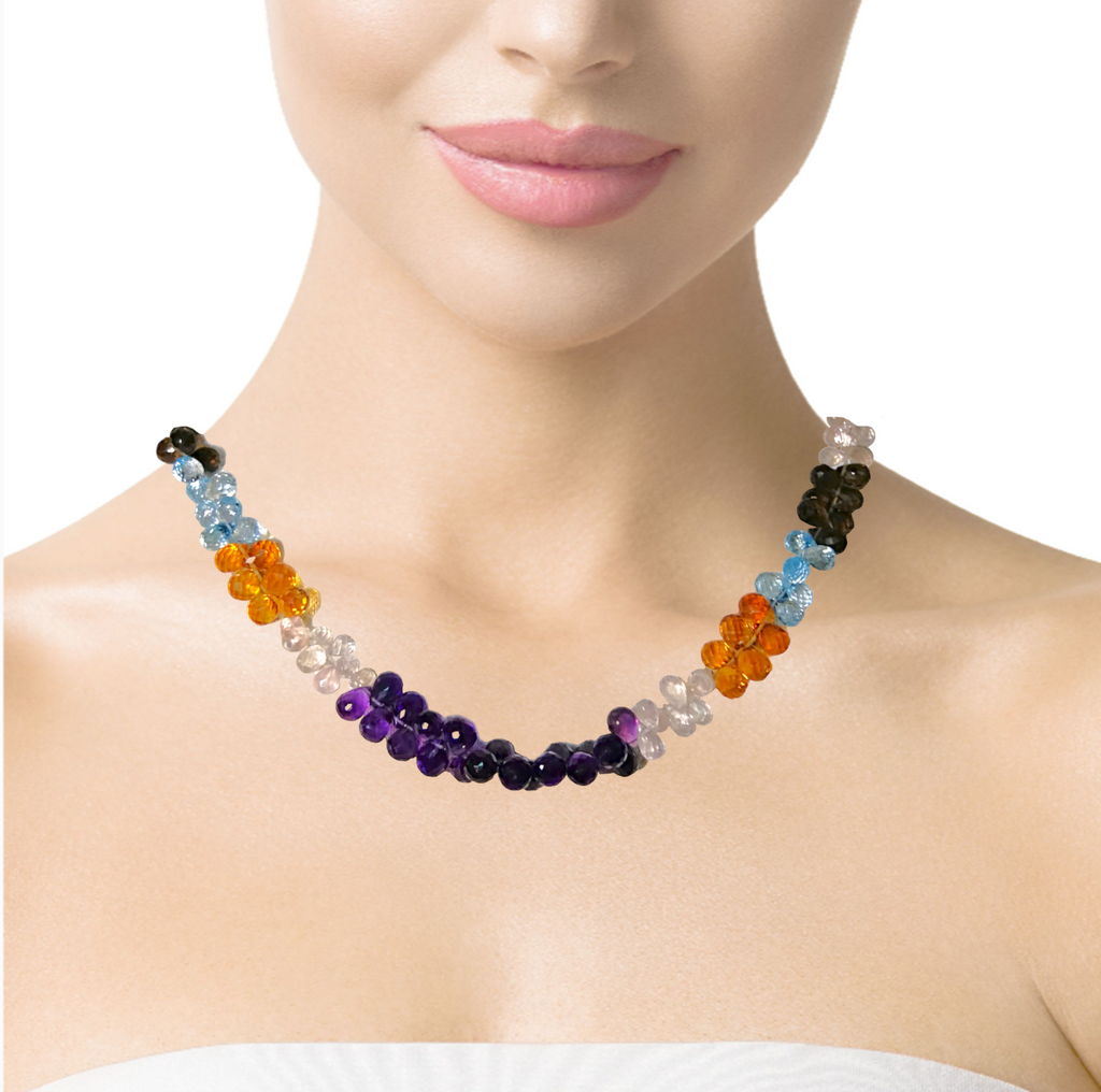 Natural Rose Quartz Smoky Quartz Swiss Blue Topaz Citrine Amethyst Gemstone Necklace