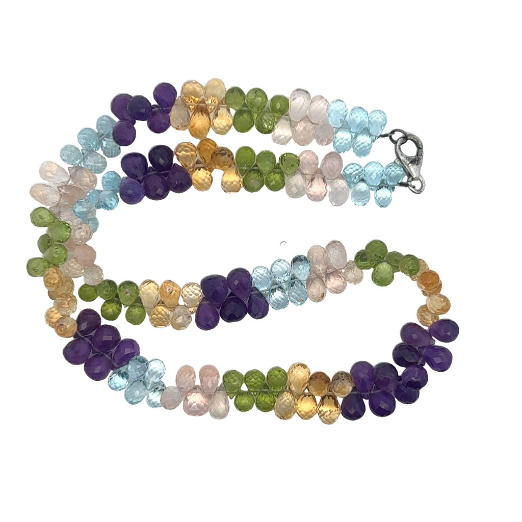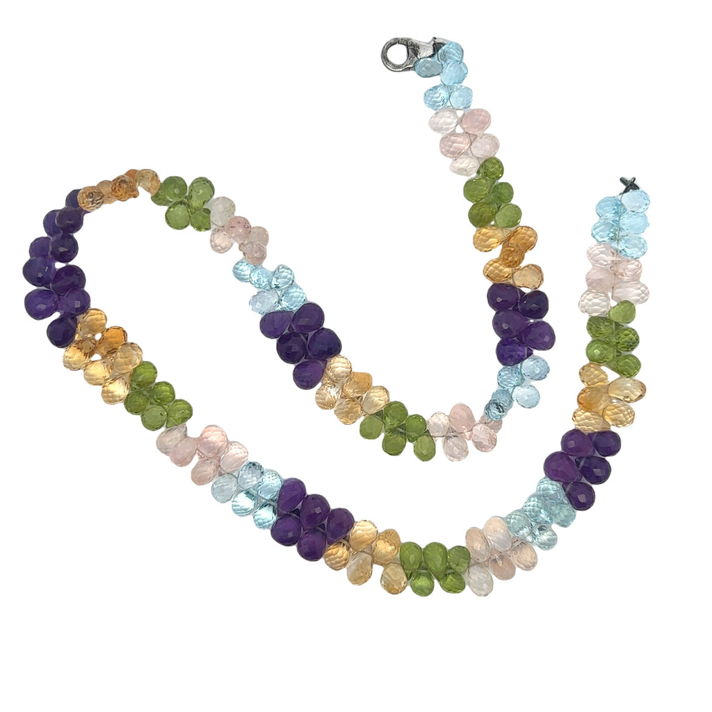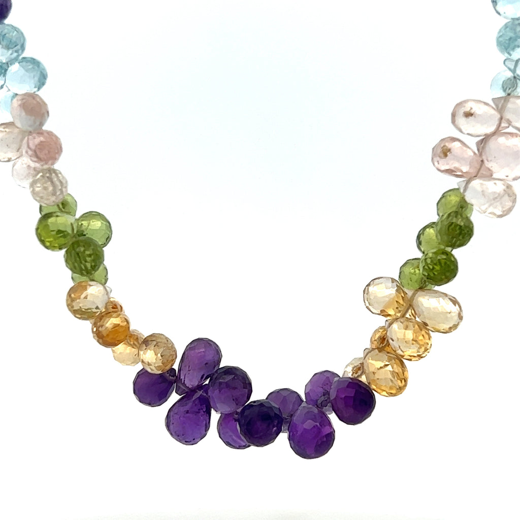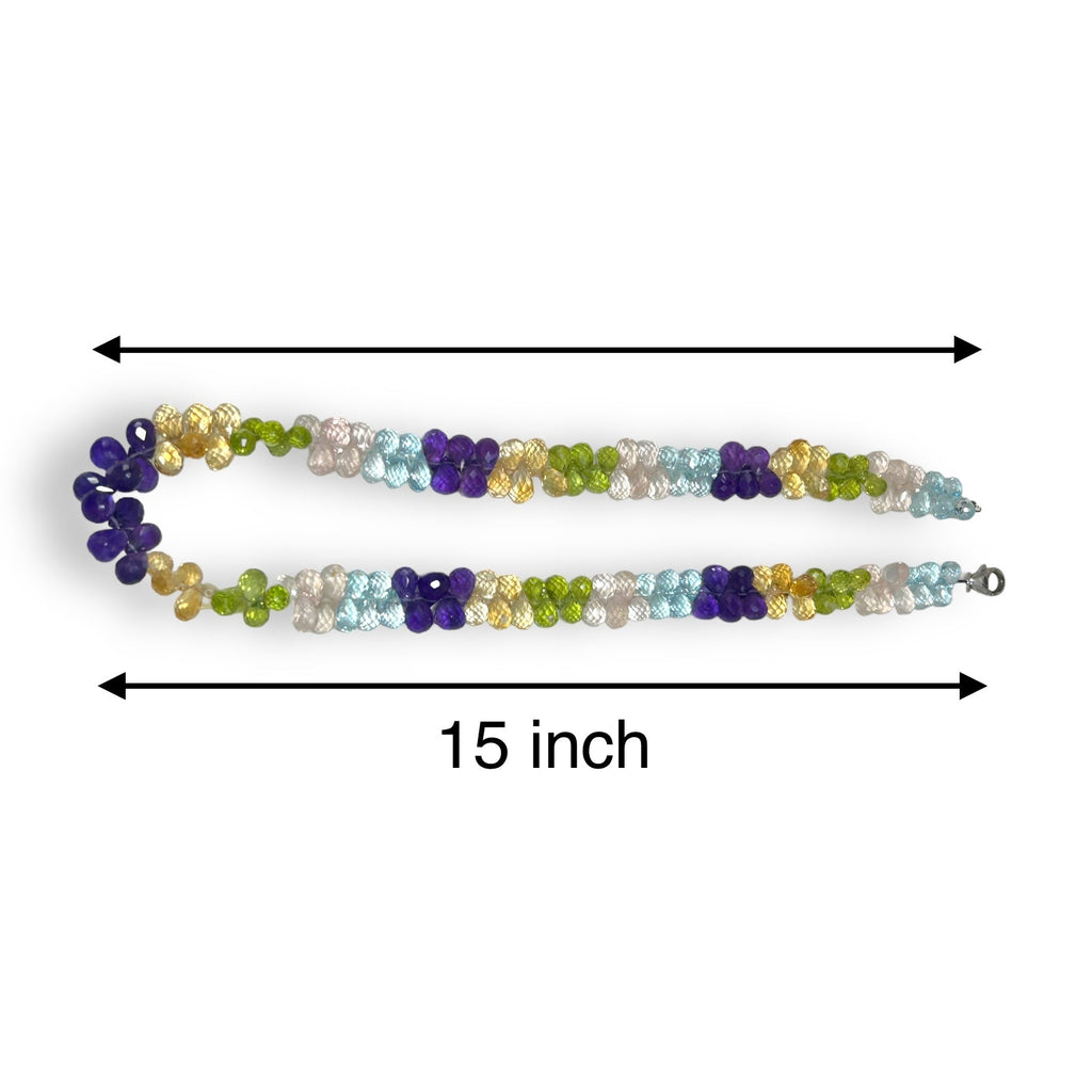 Natural Swiss Blue Topaz Rose Quartz Peridot Citrine Amethyst Gemstone Semi Necklace