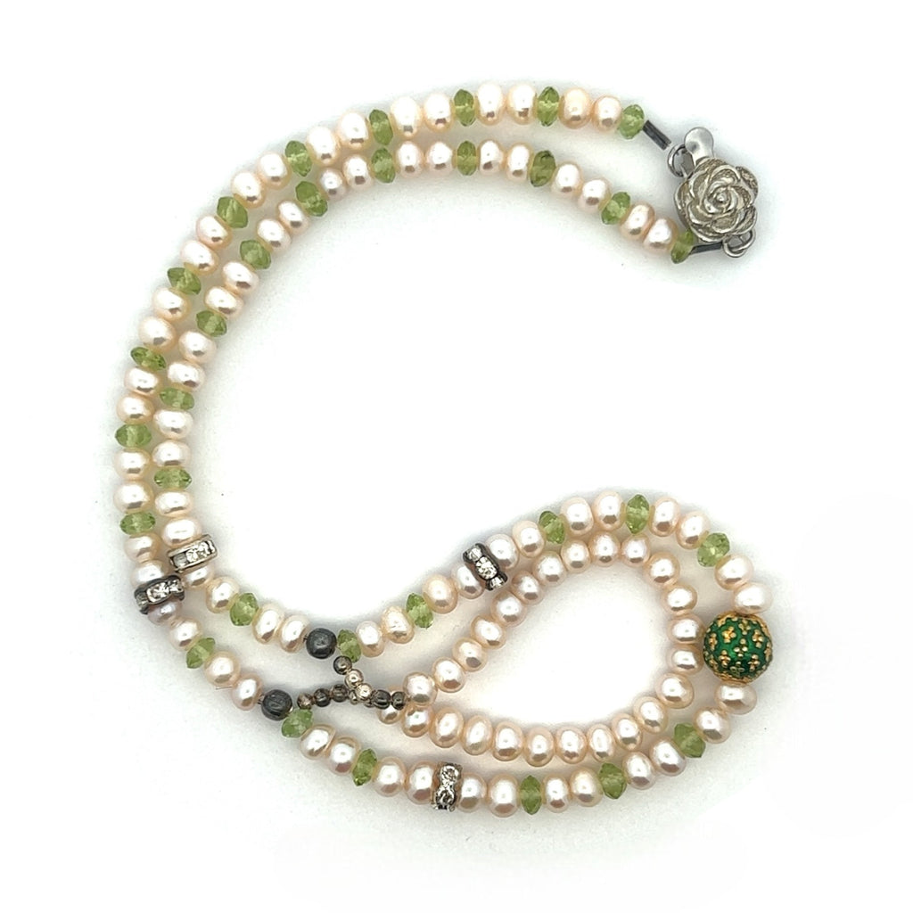 Natural Peridot Pearl Semiprecious Handmade Necklace