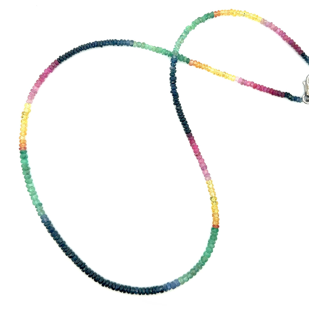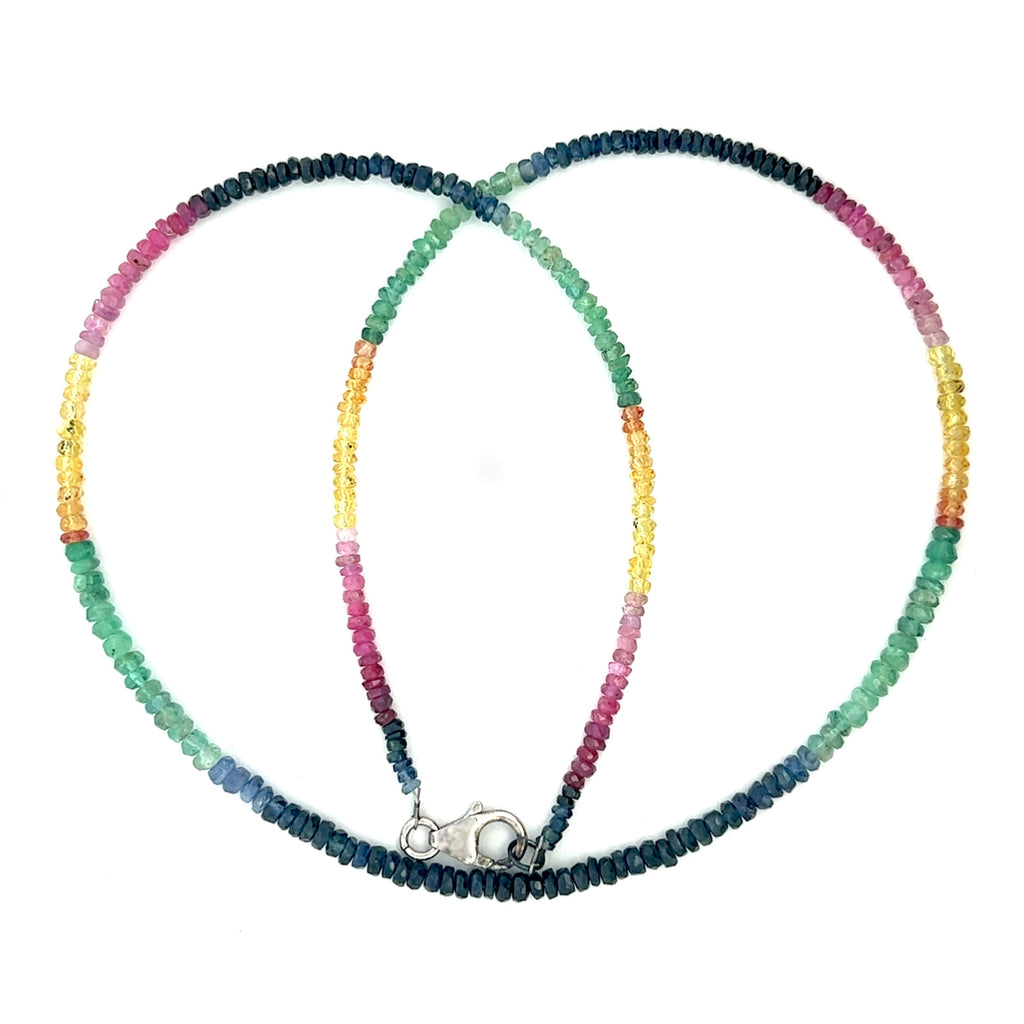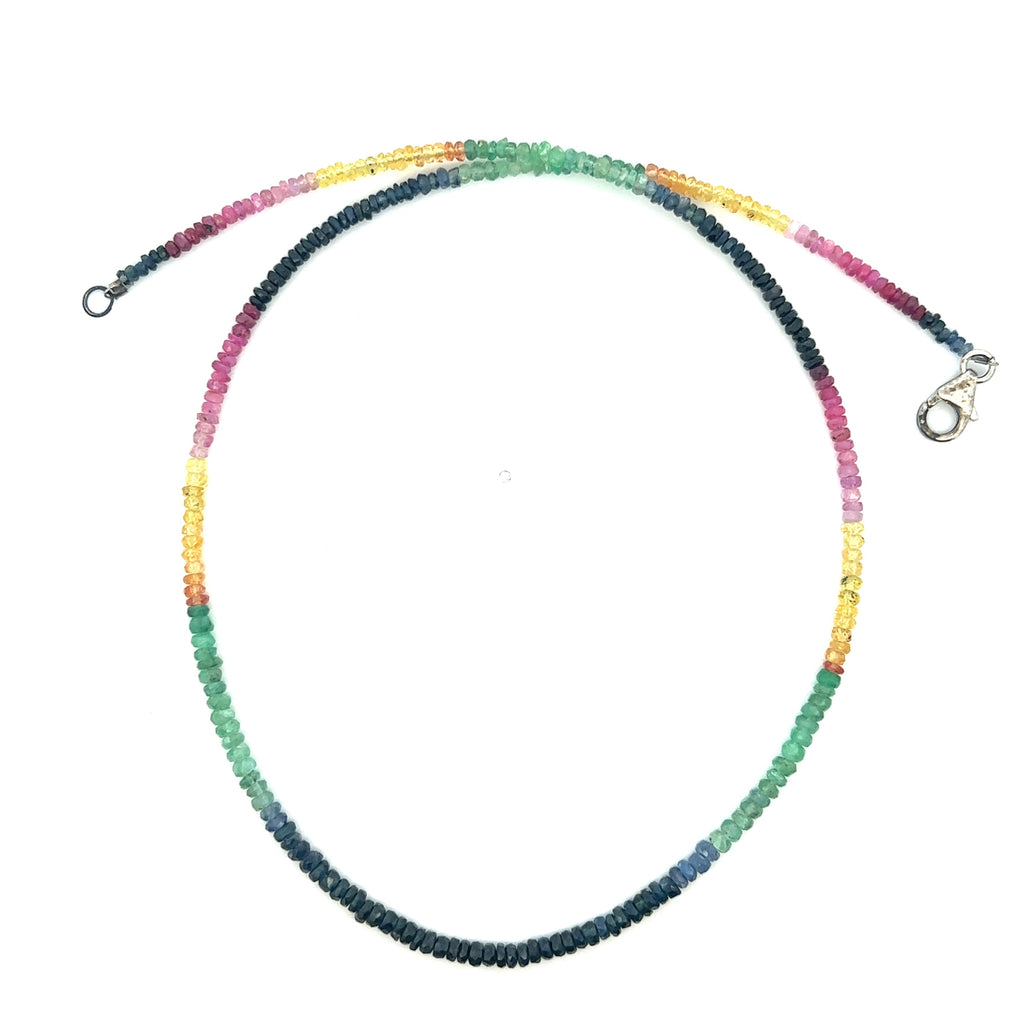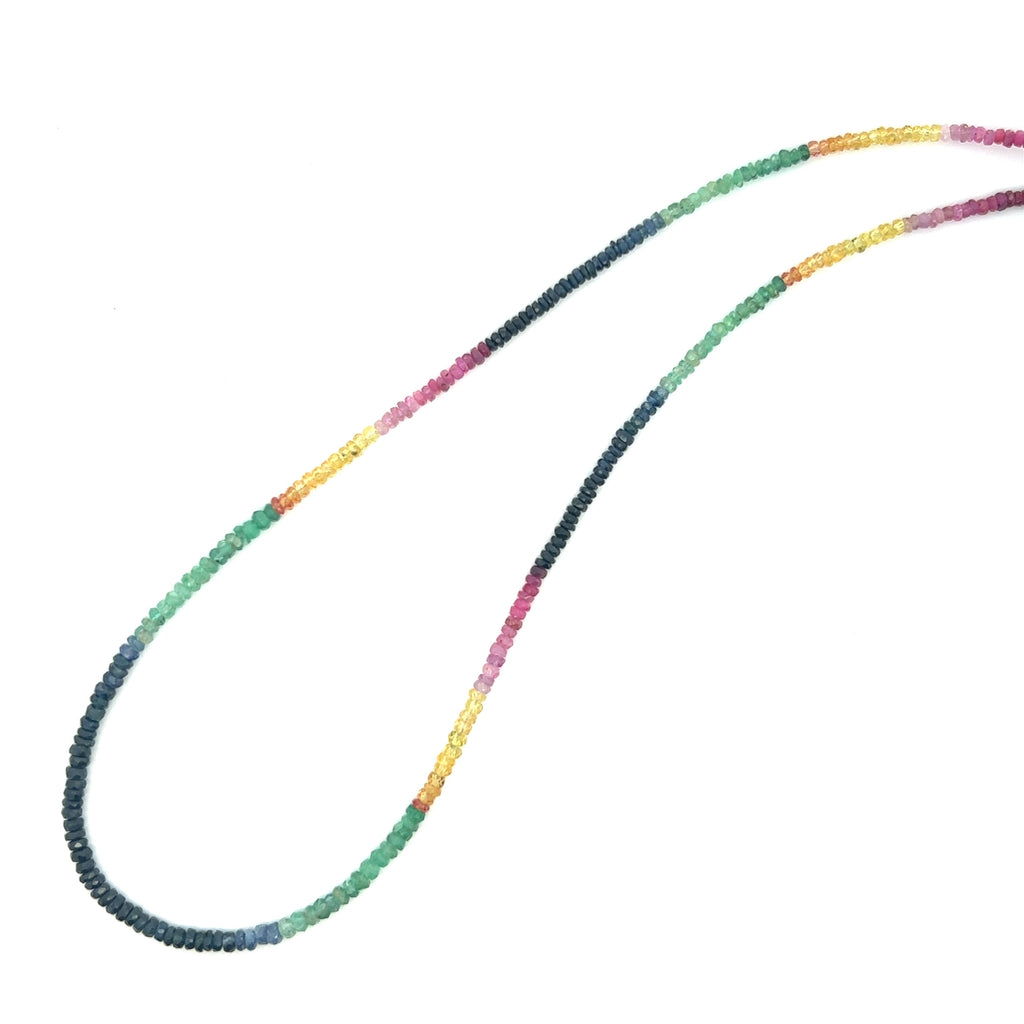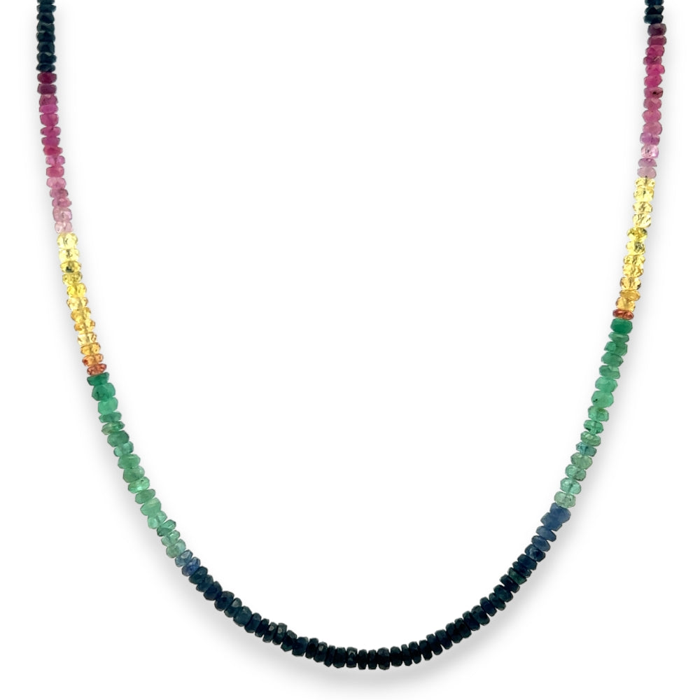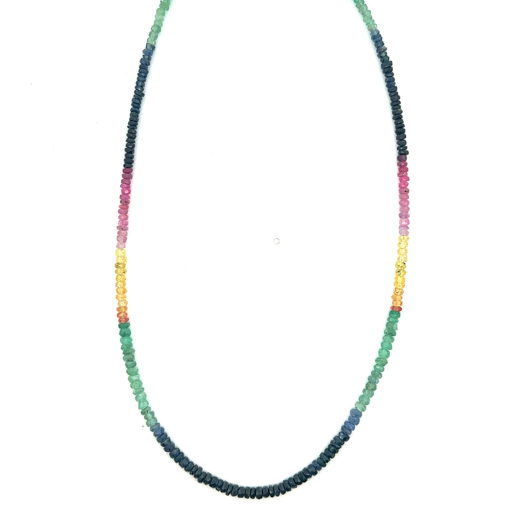 Natural Ruby / Emerald / Sapphire Multi Rondelle Facet Cut Beads Necklace