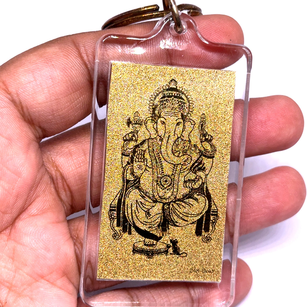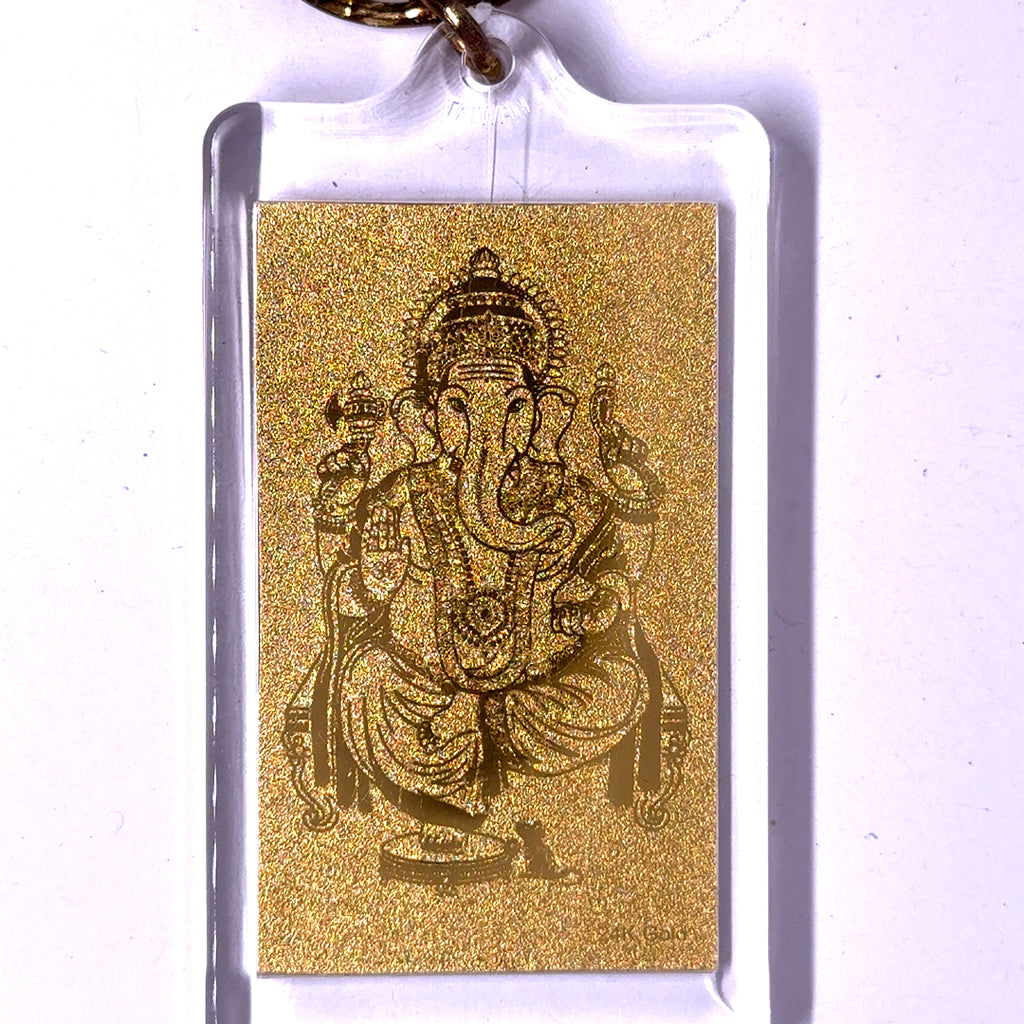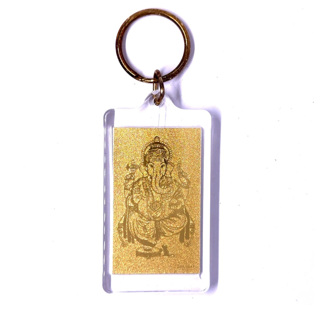 Ganesh Premium Gold Keychain Laser Engraved in 24K Gold Foil Devotional Charm
