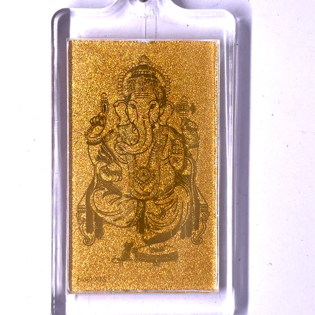 Intricately engraved in 24K gold foil, this premium Ganesh keychain channels divine blessings for intellect, success, and protection. Carry it as a sacred charm or offer it as a deeply meaningful gift.