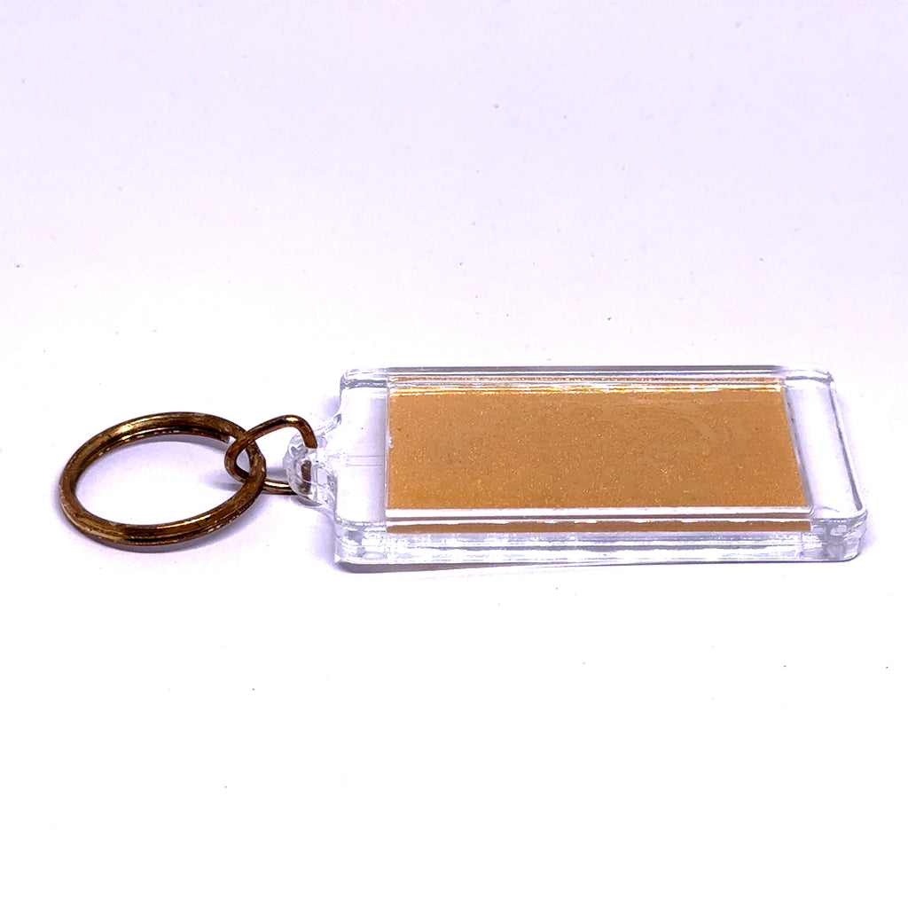 Remark 24k Gold Foil with Laser engraved finishing inside a Protective Lacquer Coating Acrylic Keychain