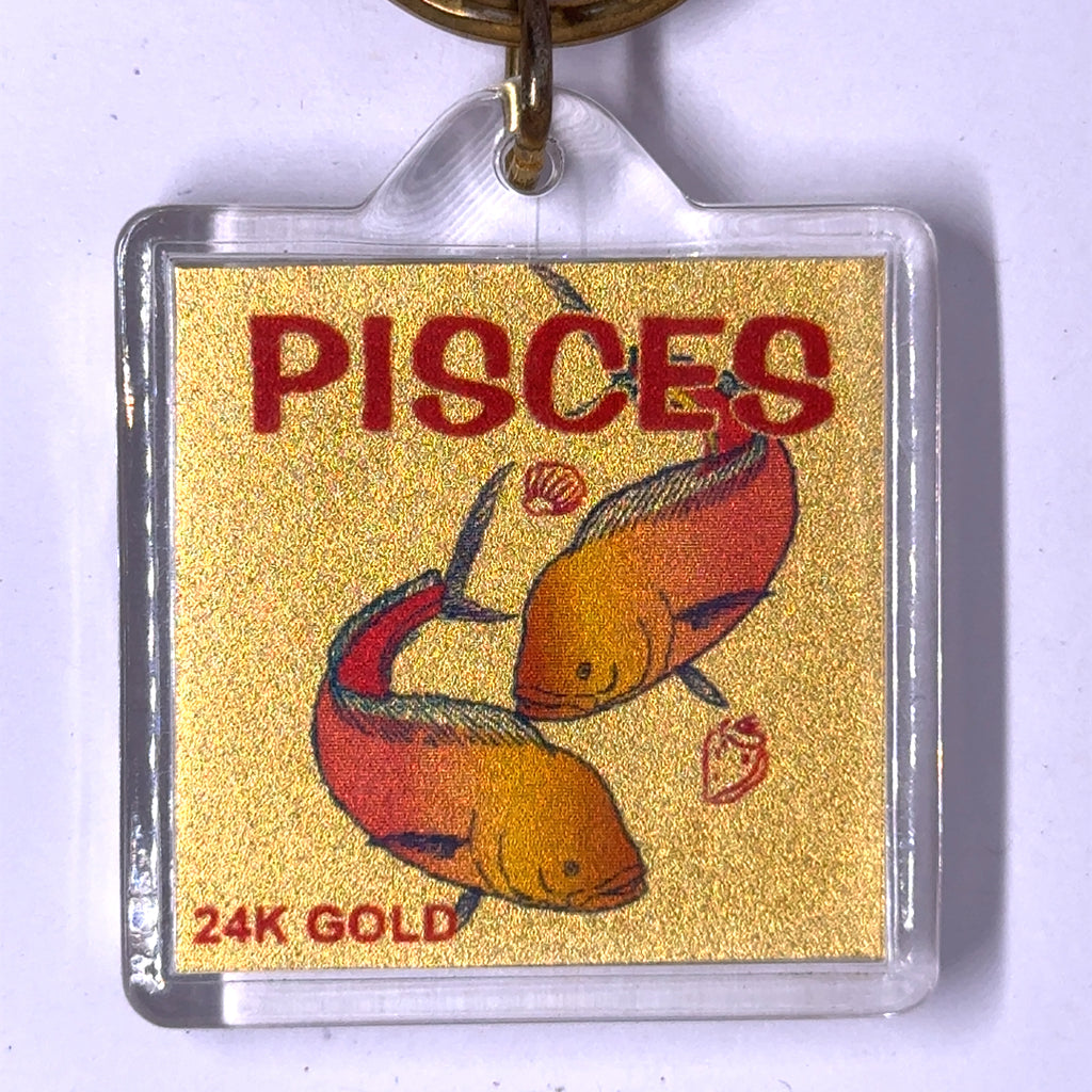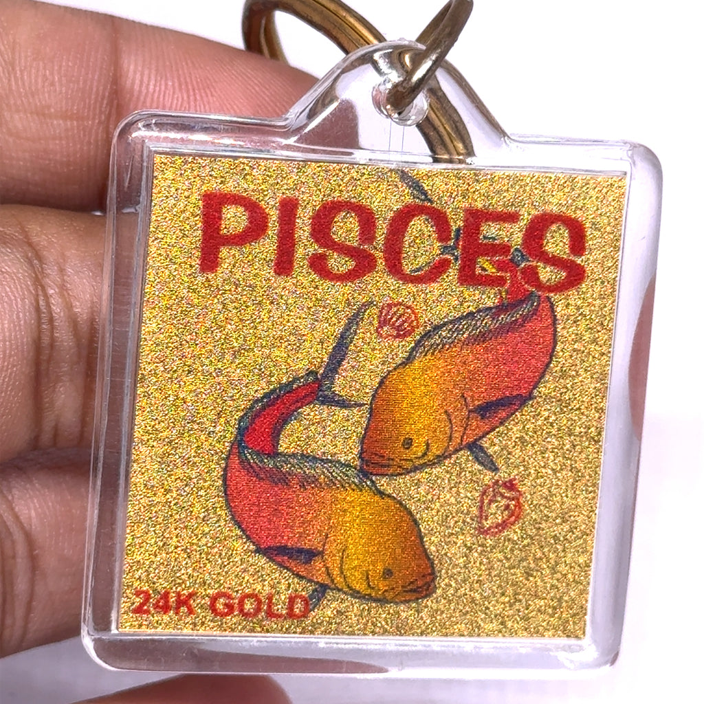 Pisces Zodiac 24K Gold Foil Engraved Colored Keychain Astrology Charm for Intuition & Creativity Gift