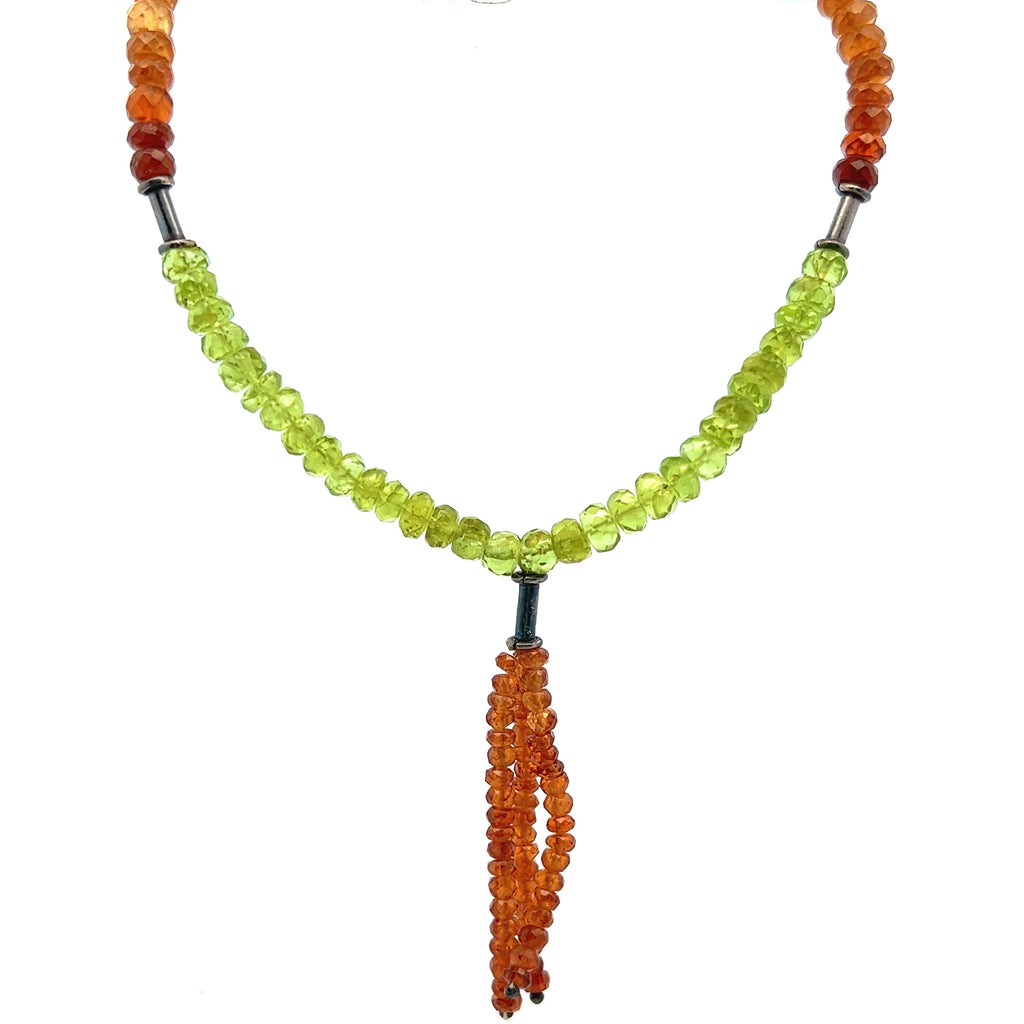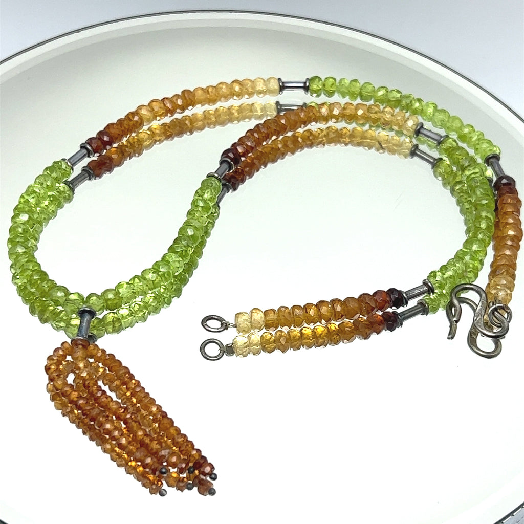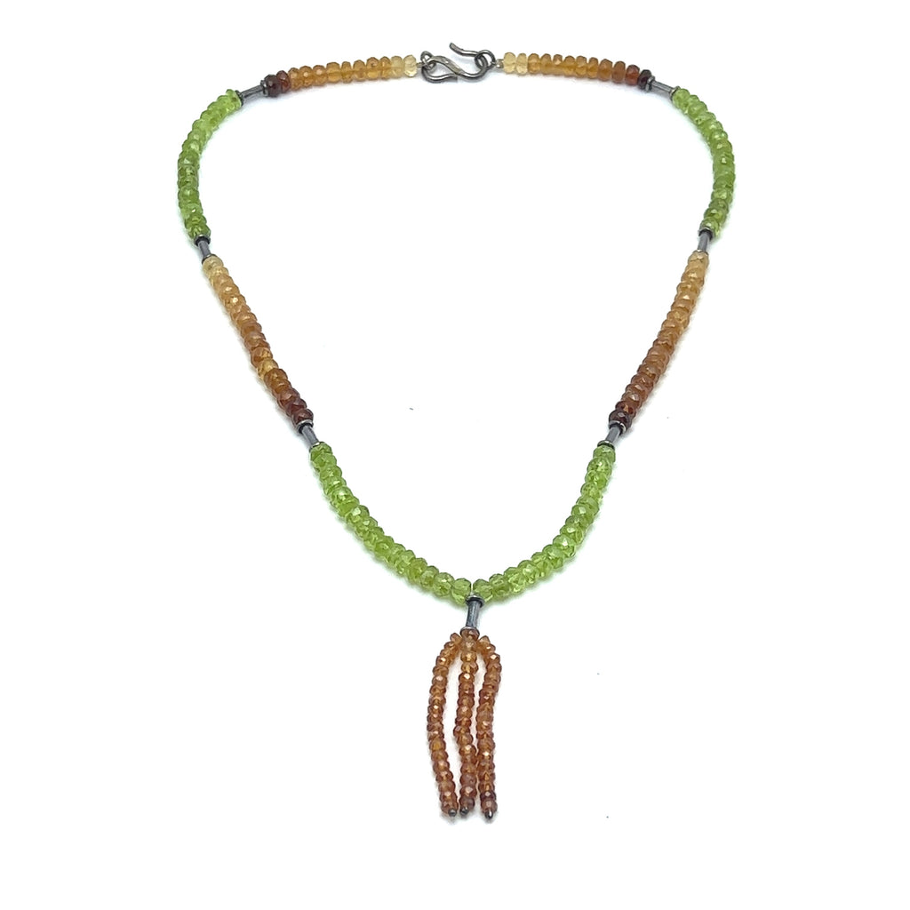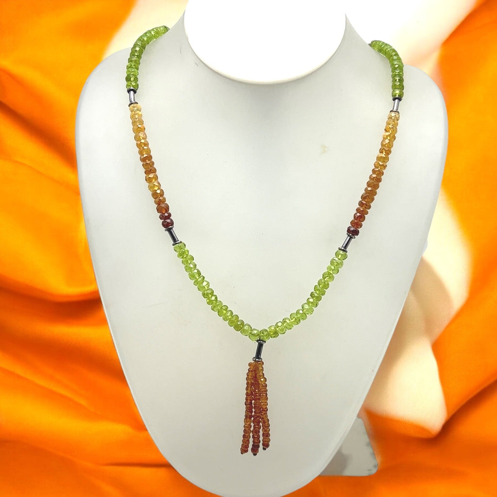 Spessartite Garnet Natural, Citrine, and Peridot Gemstone Necklace