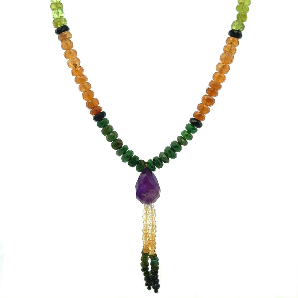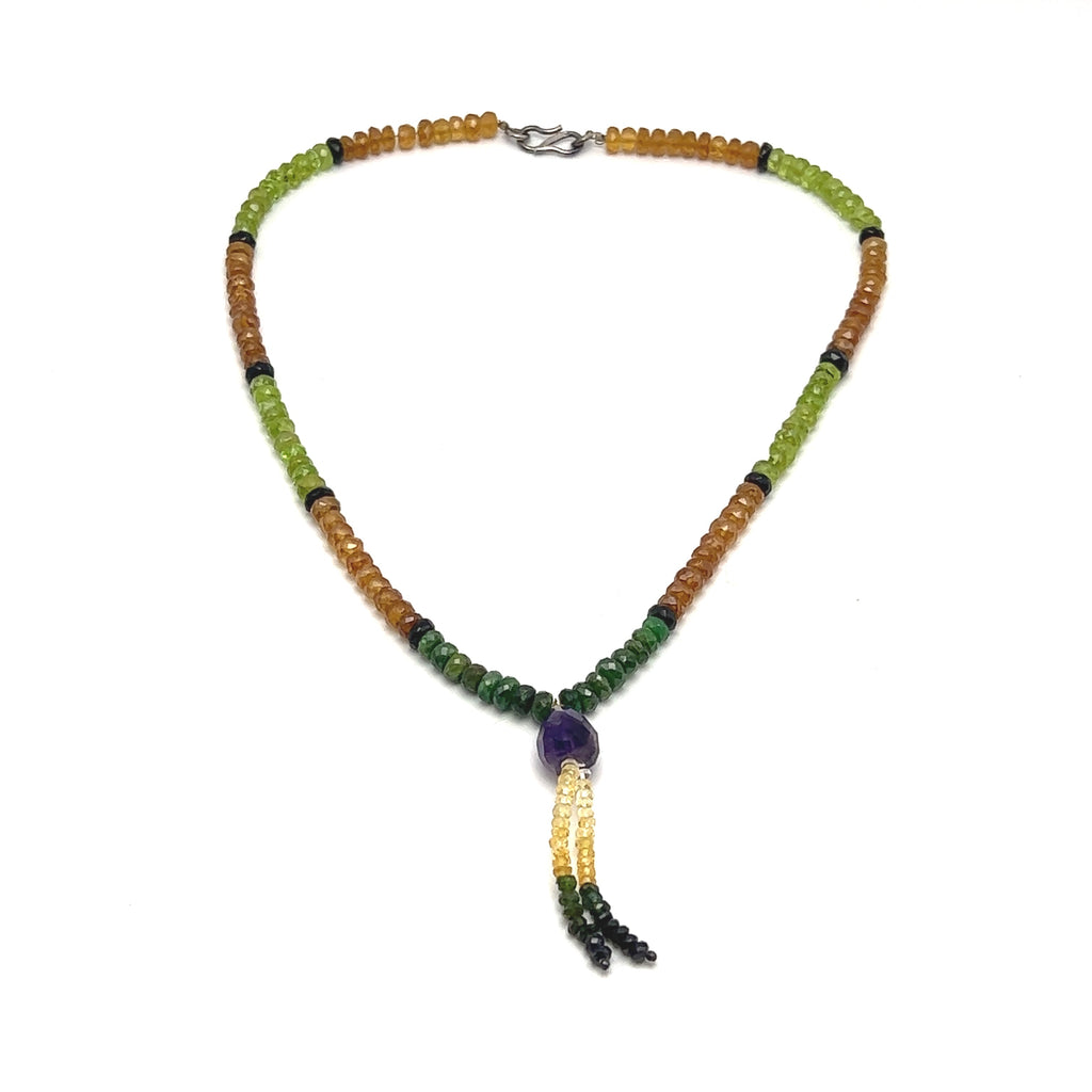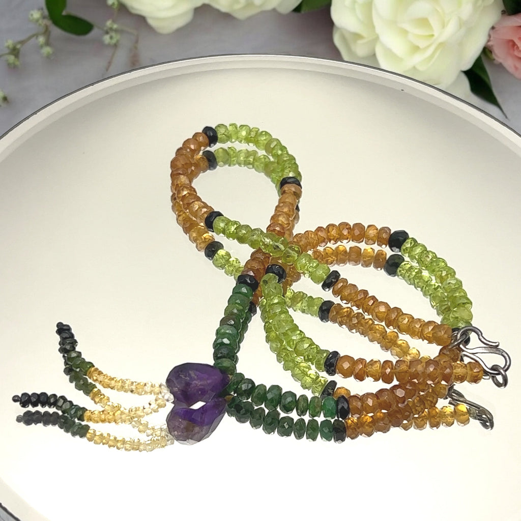 Spessartite Natural, Peridot, Tsavorite, Black Tourmaline, and Amethyst Necklace