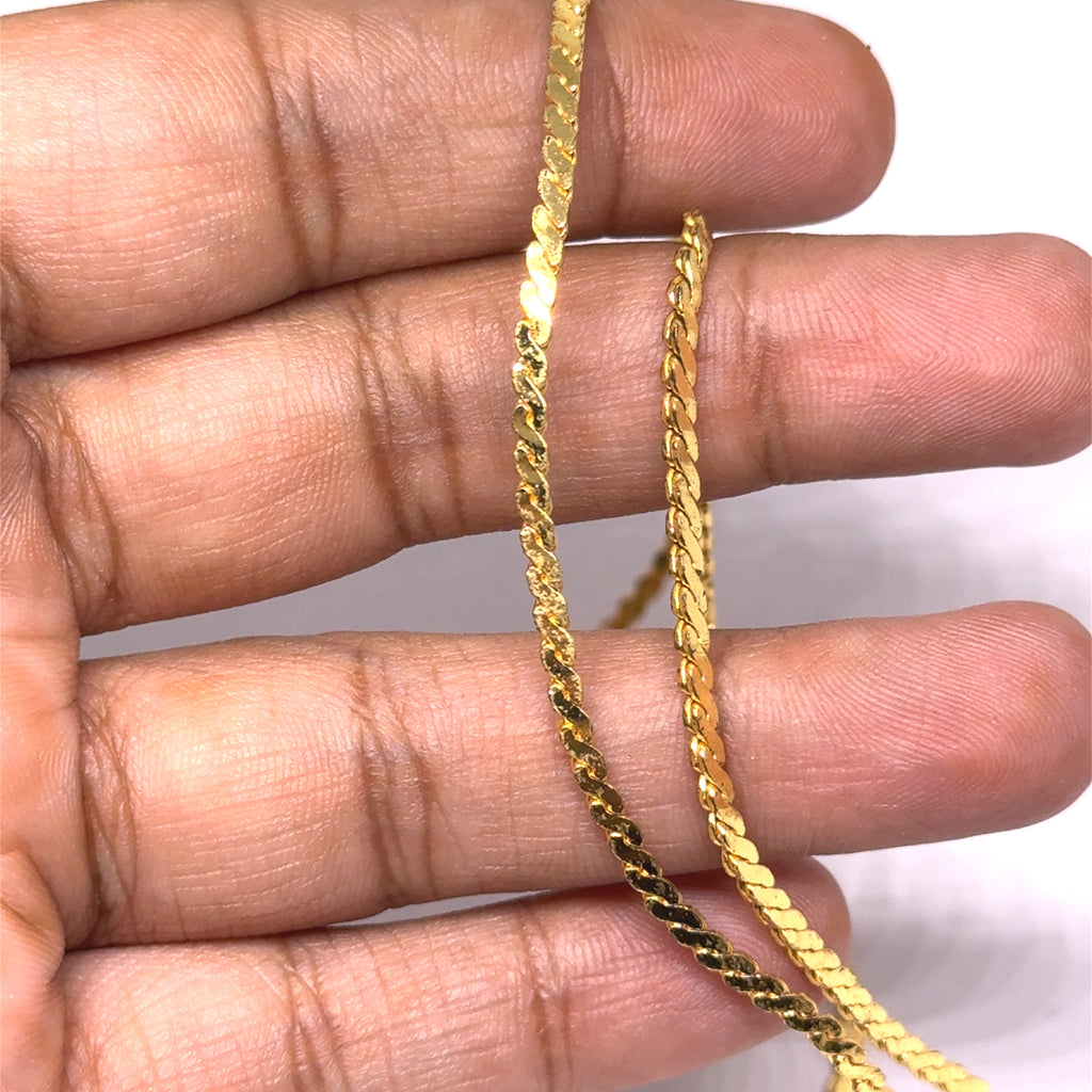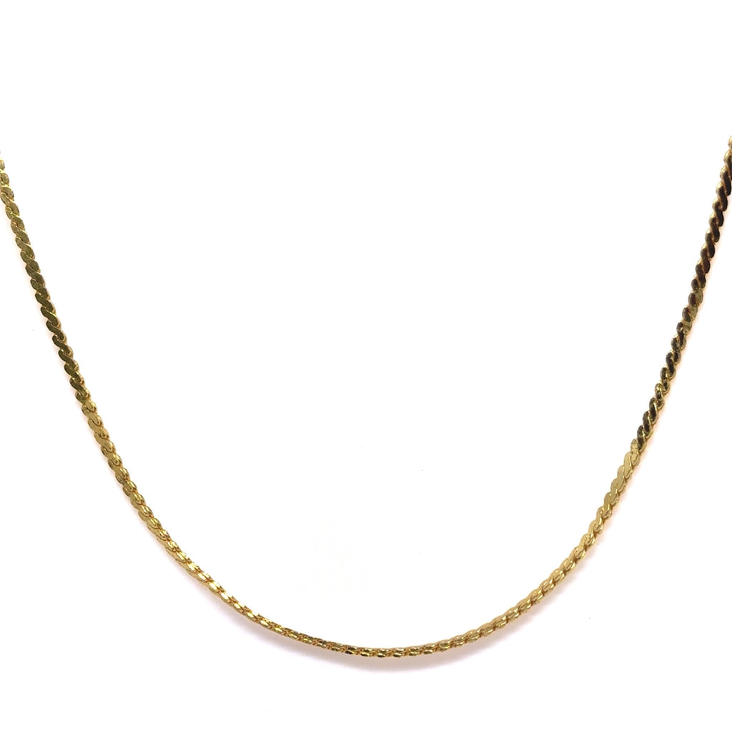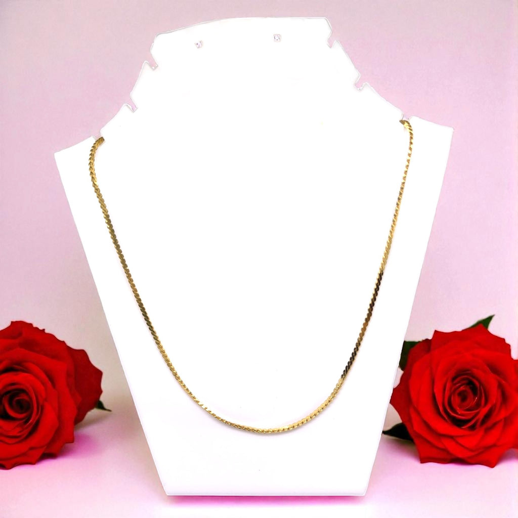 Celebrate fluid elegance with this beautiful serpentine chain necklace. This captivating piece is distinguished by its series of gracefully interlocking 'S'-shaped links, creating a sinuous and liquid-like texture that drapes beautifully. Finished with a gleaming gold plating that provides a radiant, high-polish shine, its surface shimmers with every movement. Its unique texture makes it a stunning standalone accessory, perfect for adding a touch of sophisticated and modern charm to any look.