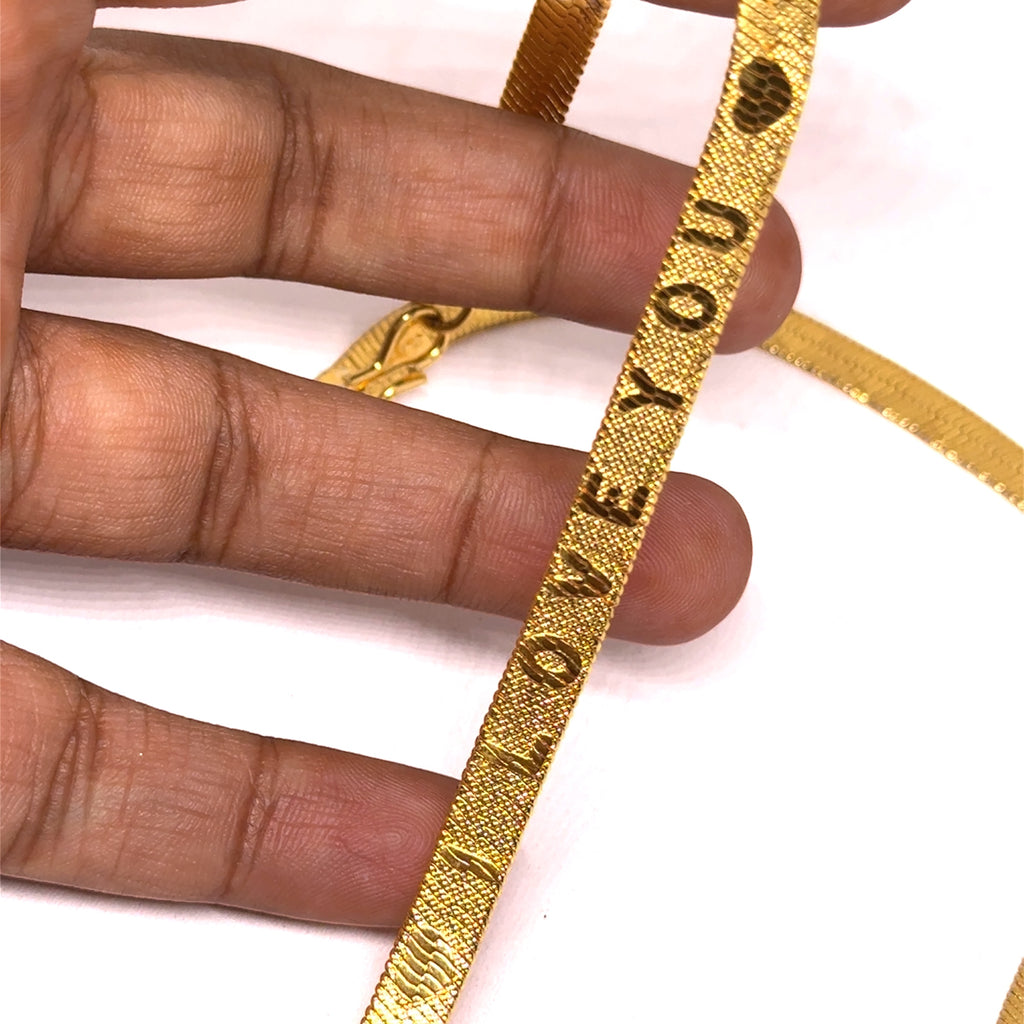 Celebrate a heartfelt connection with this unique 'I Love You' initial snake chain necklace. This piece features a sleek, fluid snake chain, enhanced with a rich micron gold plating for a beautiful and lasting shine. What makes it truly special is the thoughtful addition of a discreet charm, carrying a personal message of love. Perfect as a deeply meaningful gift for someone special or as a personal reminder of a cherished bond, this necklace combines timeless style with heartfelt sentiment.