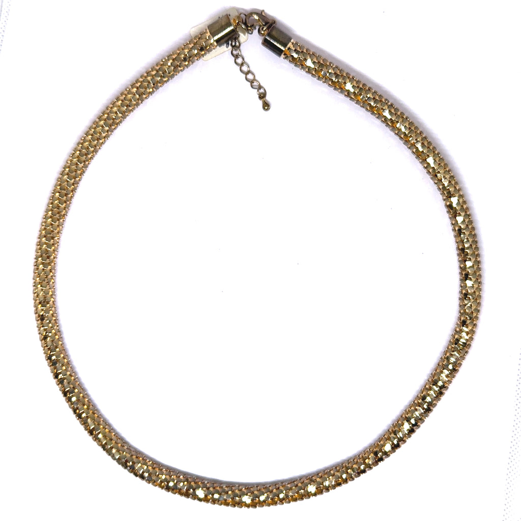 Add a fierce touch to your outfit with this yellow-tone snake scale tube necklace, designed in a flexible linked mesh that reflects light with every move. Its modern choker silhouette is bold, shiny, and fashion-forward—perfect for turning heads at parties, events, or evening outings.