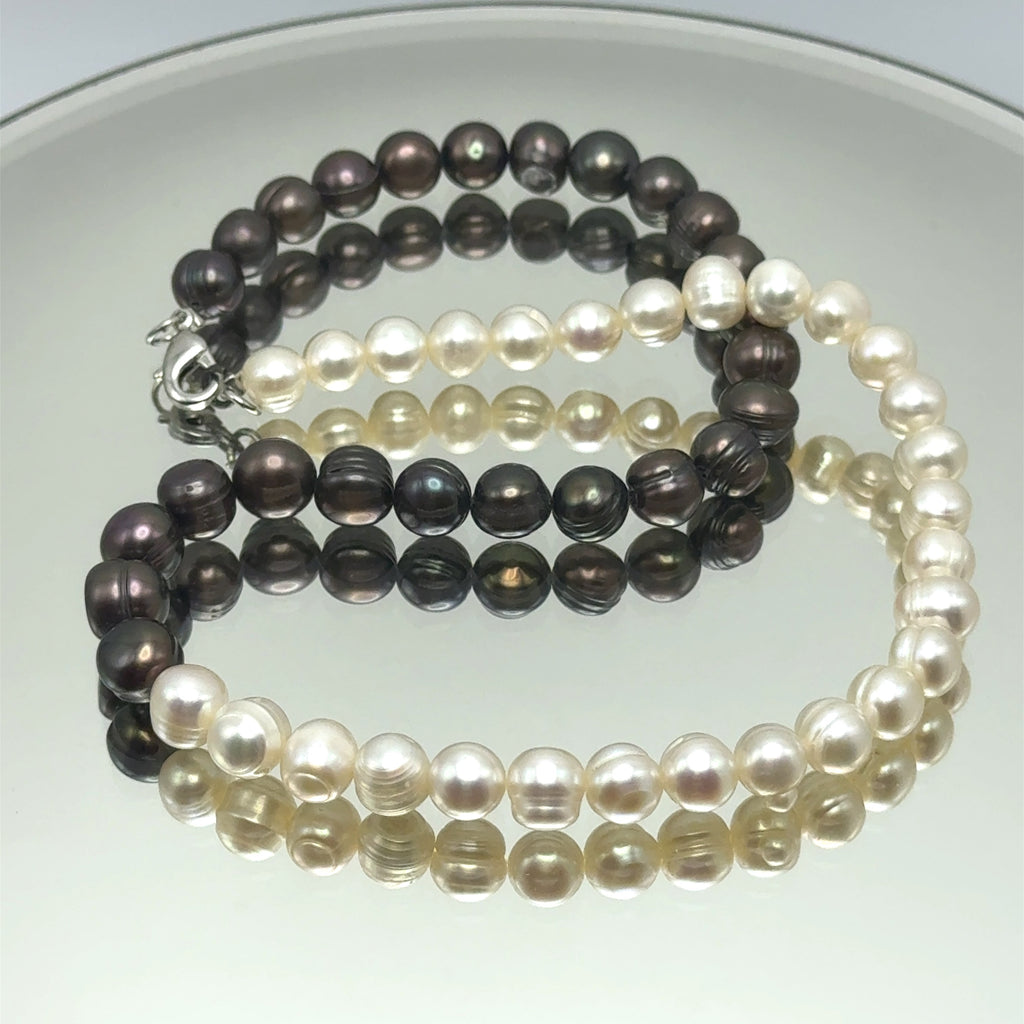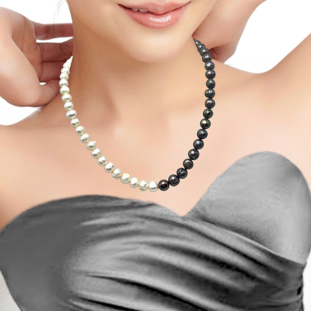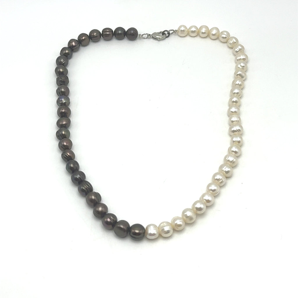 Pearl Modern Style White and Dark Brown Necklace