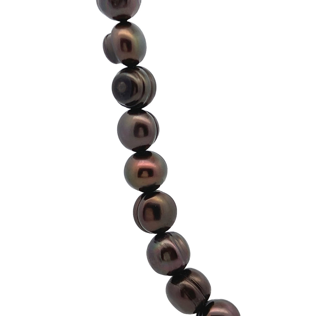 Pearl White Brown Plain Ringed Pearl Necklace