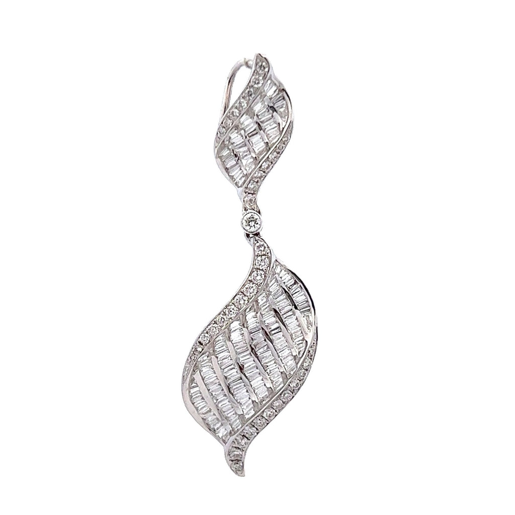18K White Gold Natural Diamond Tapered Round Swirl Chandelier Pendant Jewelry