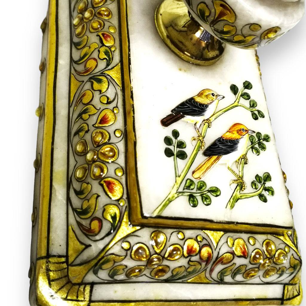 Our handcrafted Indian marble item crafted by skilled artisans from the rural areas of Rajasthan. Our product is made from Makrana marble and showcases an attractive design with intricate painting work, resulting in a stunning appearance. Marble is a timeless, luxurious, and durable stone that not only adds beauty to your space but also keeps the ambiance cool. This product is not only a wonderful addition to your own home or office but also an ideal choice for gifting to your friends, family, and for all occasions. Being completely handmade, this collectible item is a testament to the craftsmanship and dedication of our artisans. JEWELNJOY invites you to enjoy your shopping experience and explore our range of handcrafted traditional items.