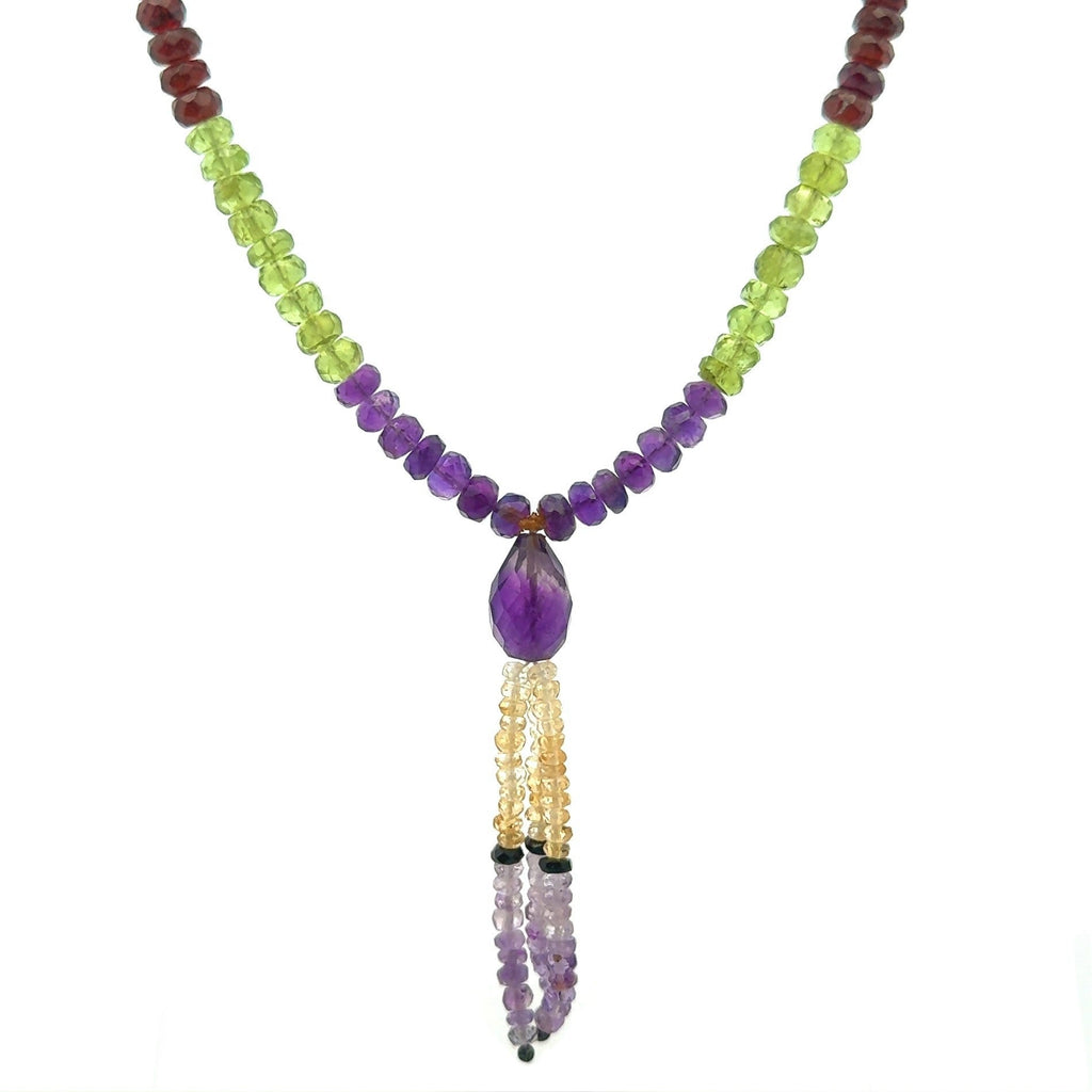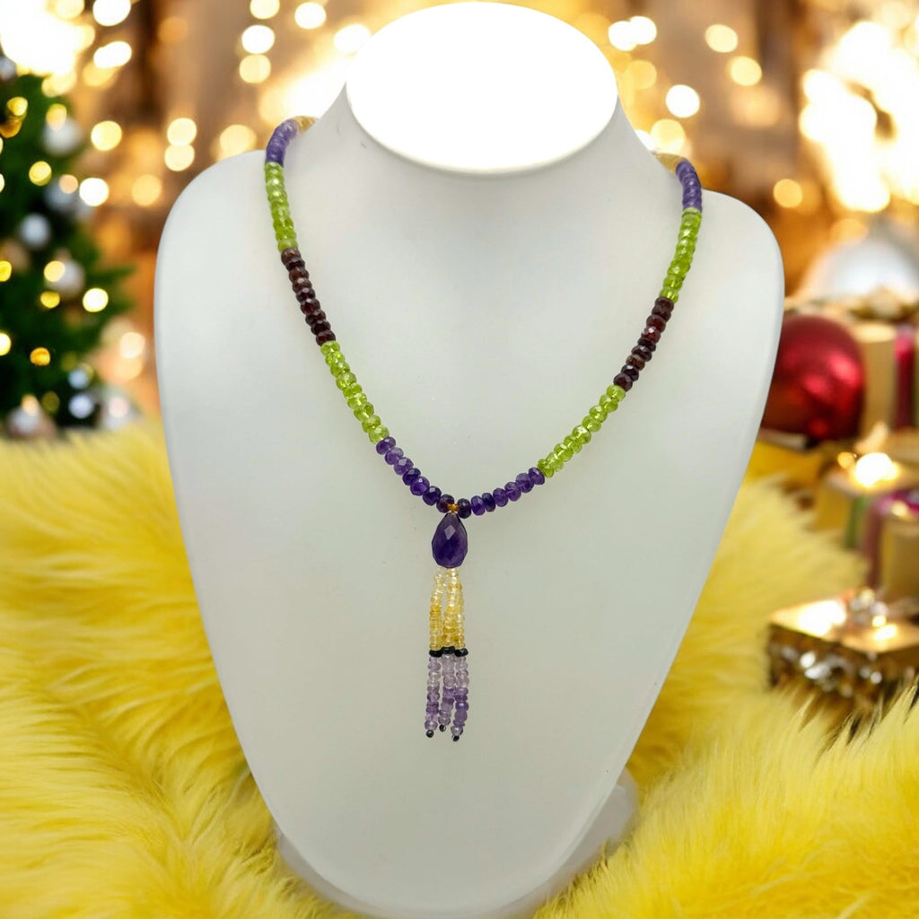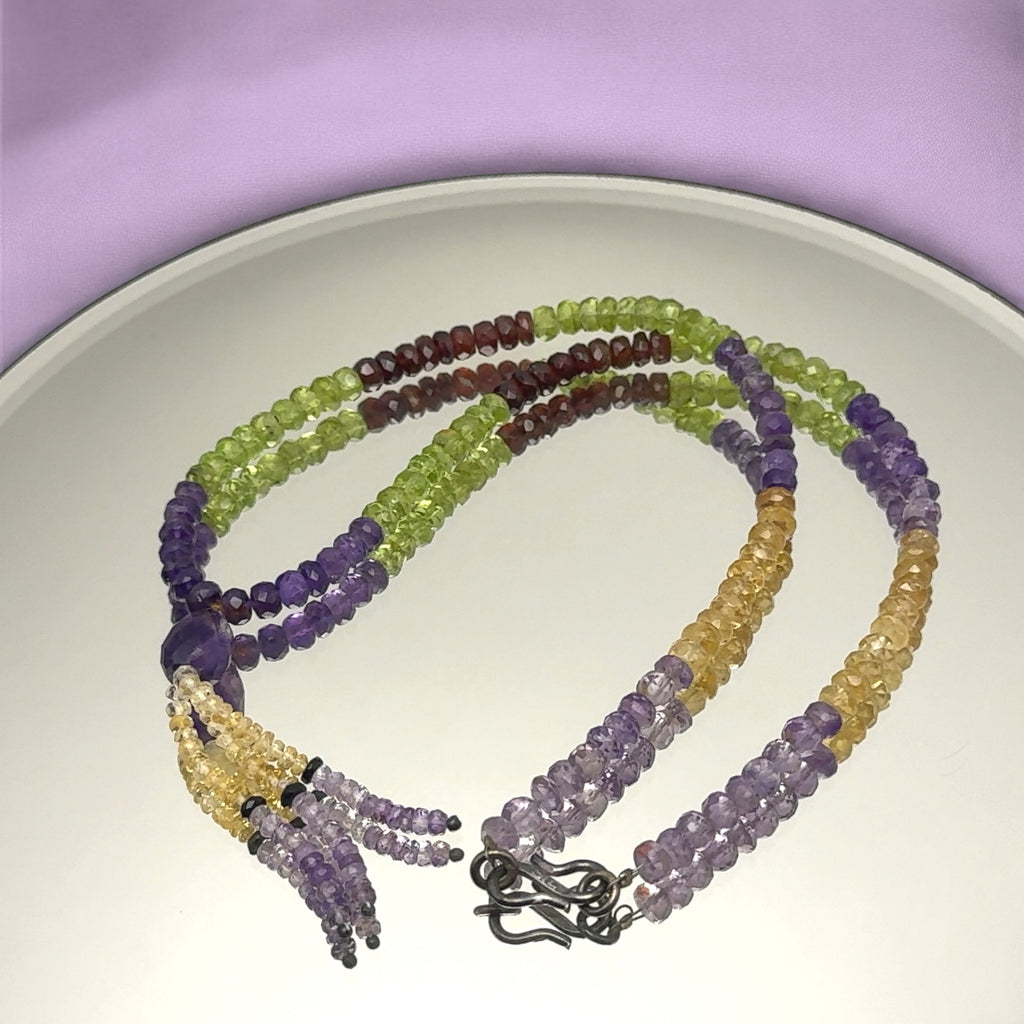 Peridot Natural, Amethyst, Spessartite Garnet, and Citrine Necklace