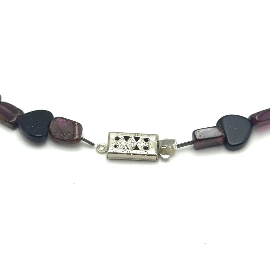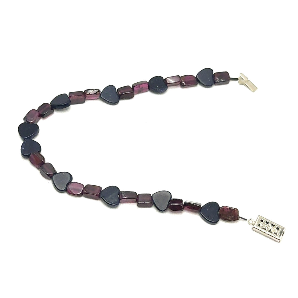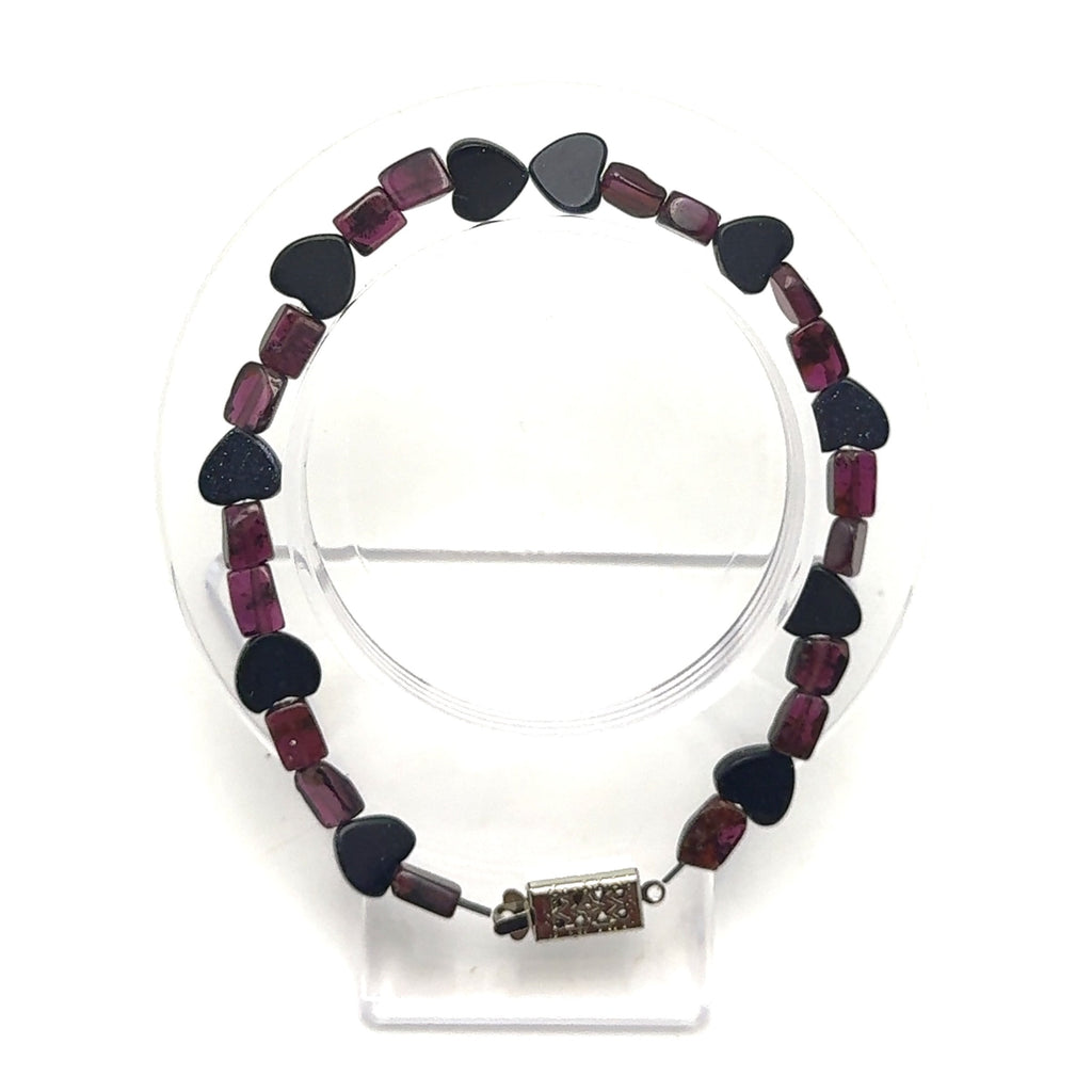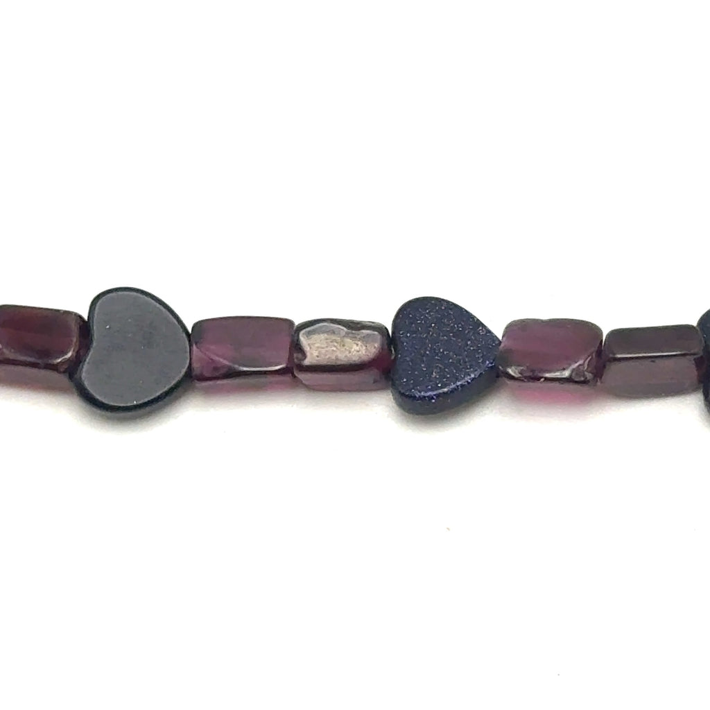 Silver Sunstone Natural Heart with Garnet Tube Beads Semi Bracelet