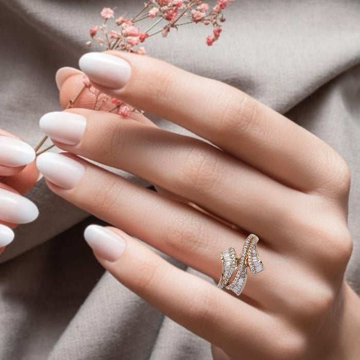 18K Rose Gold Ring Natural Diamond Channel Set Ribbon Anillo