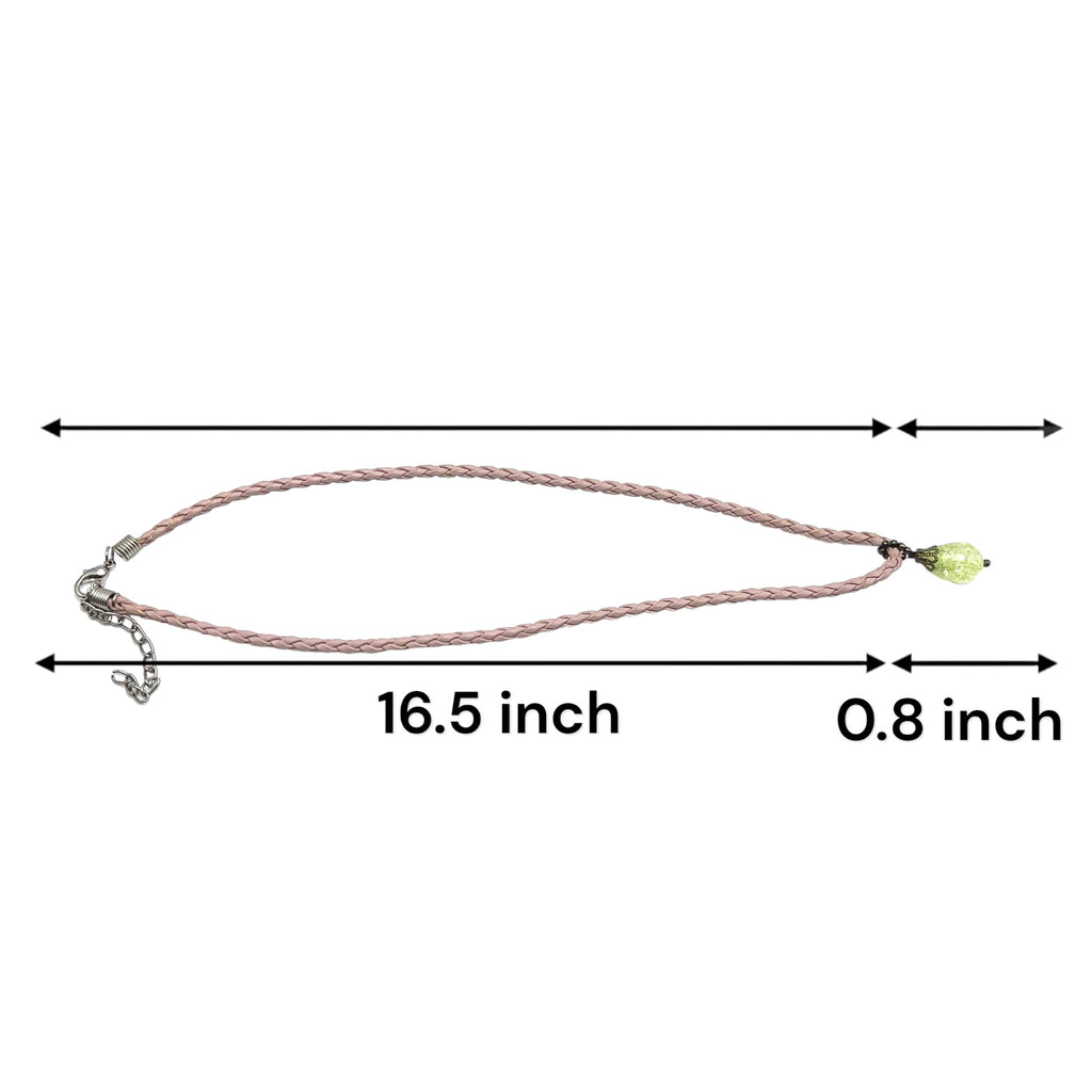 Light Green Glass Drop Shape Stone 16mm with Light Pink Twisted Cord Pendant Necklace