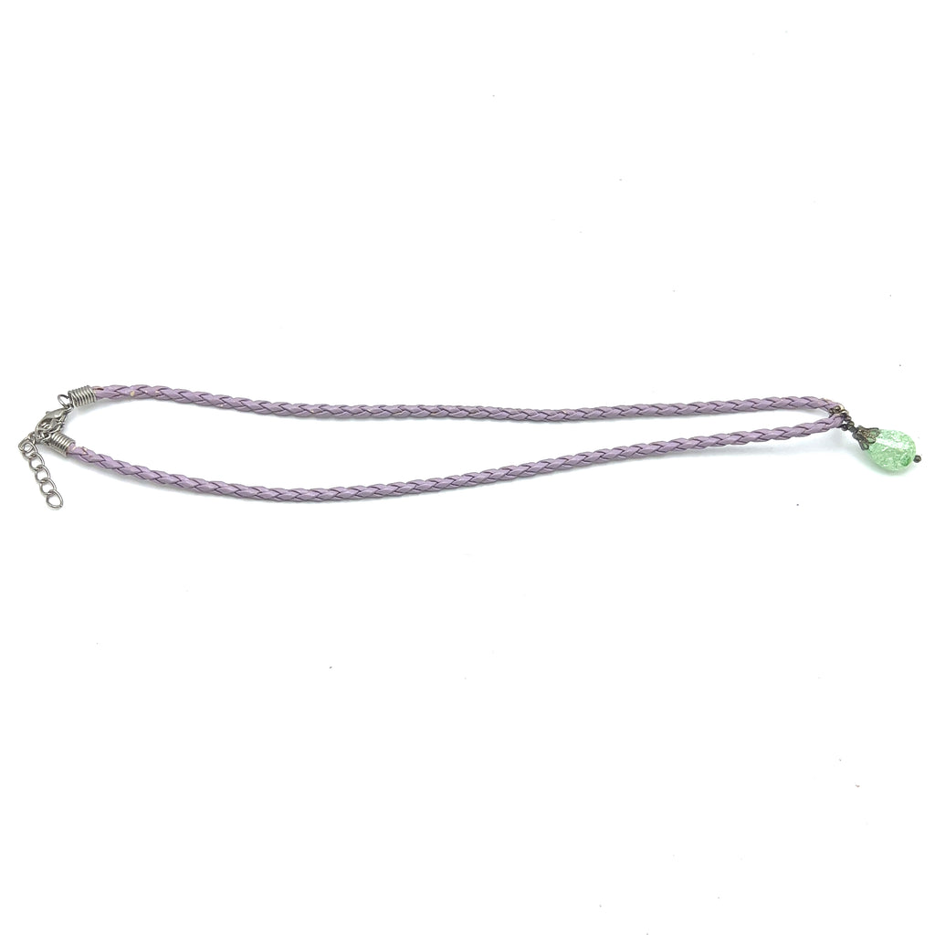 Light Green Glass Stone Drop Shape 16mm with Purple Twisted Cord Pendant Necklace